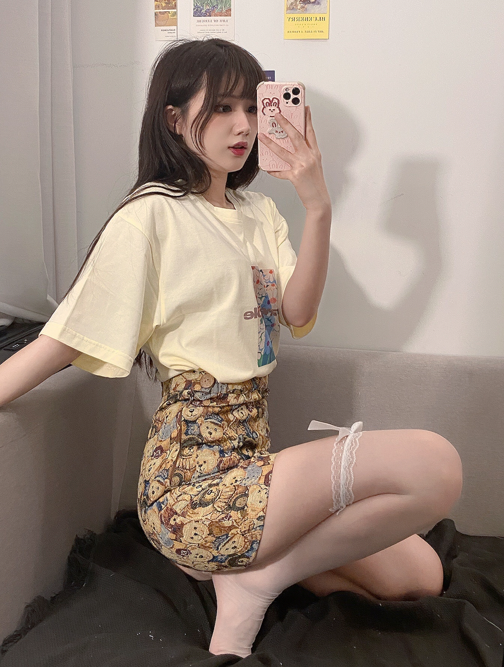 T恤:ozone hole 这件衣服的颜色特别显白,奶黄色给人一种夏天的感觉,胸前的花朵设计很漂亮 特别少女,非常的可爱 又温柔!