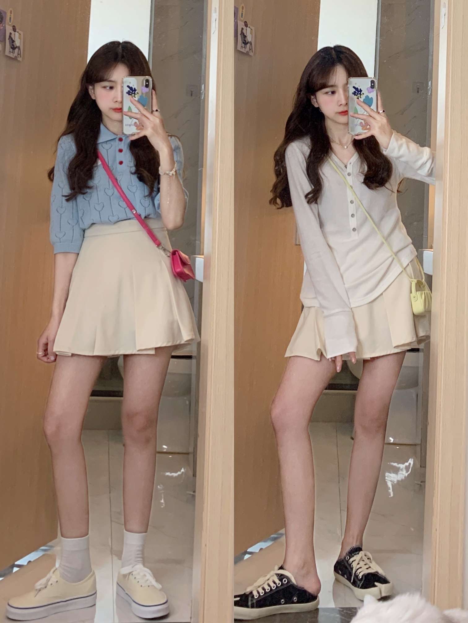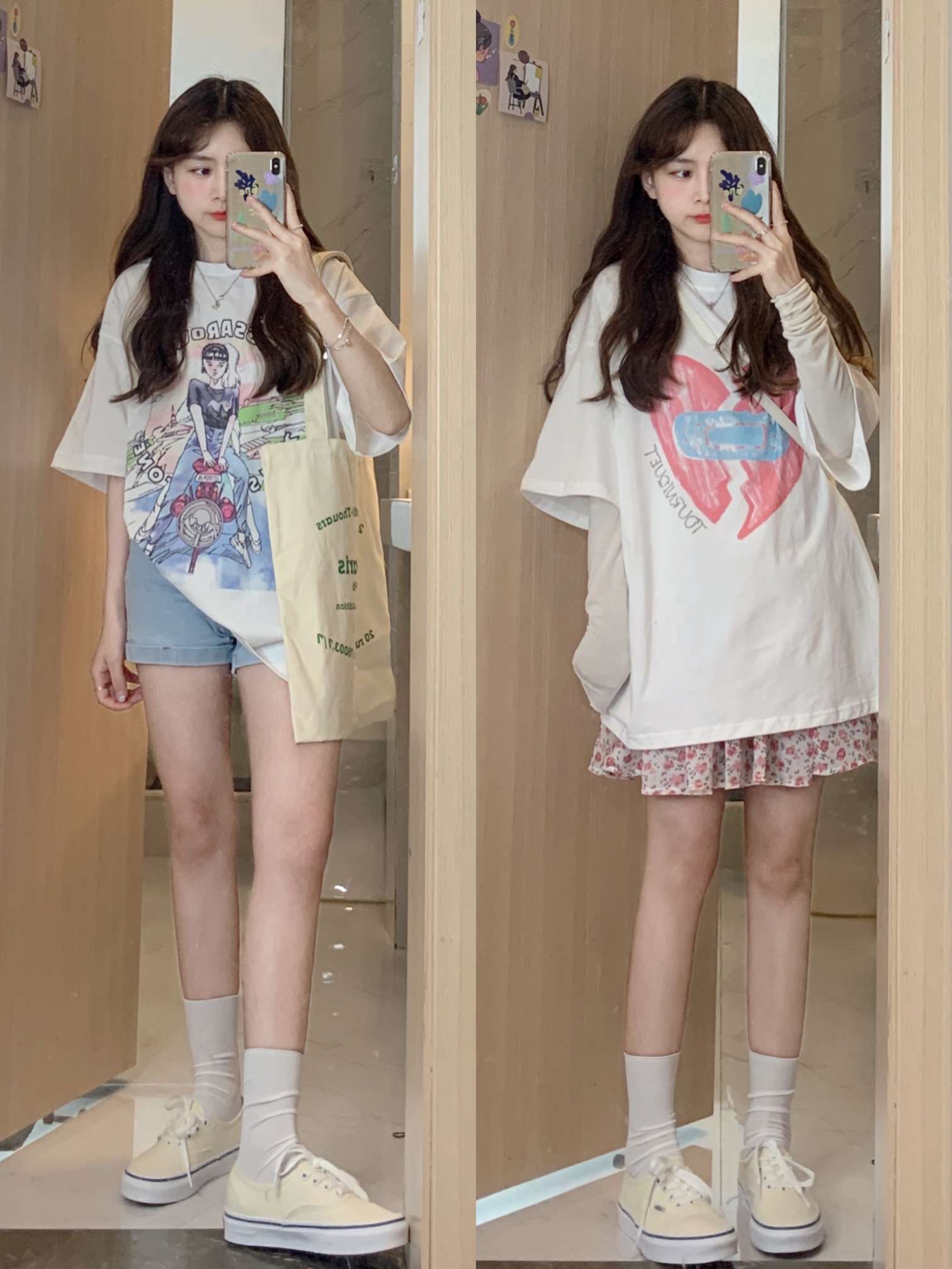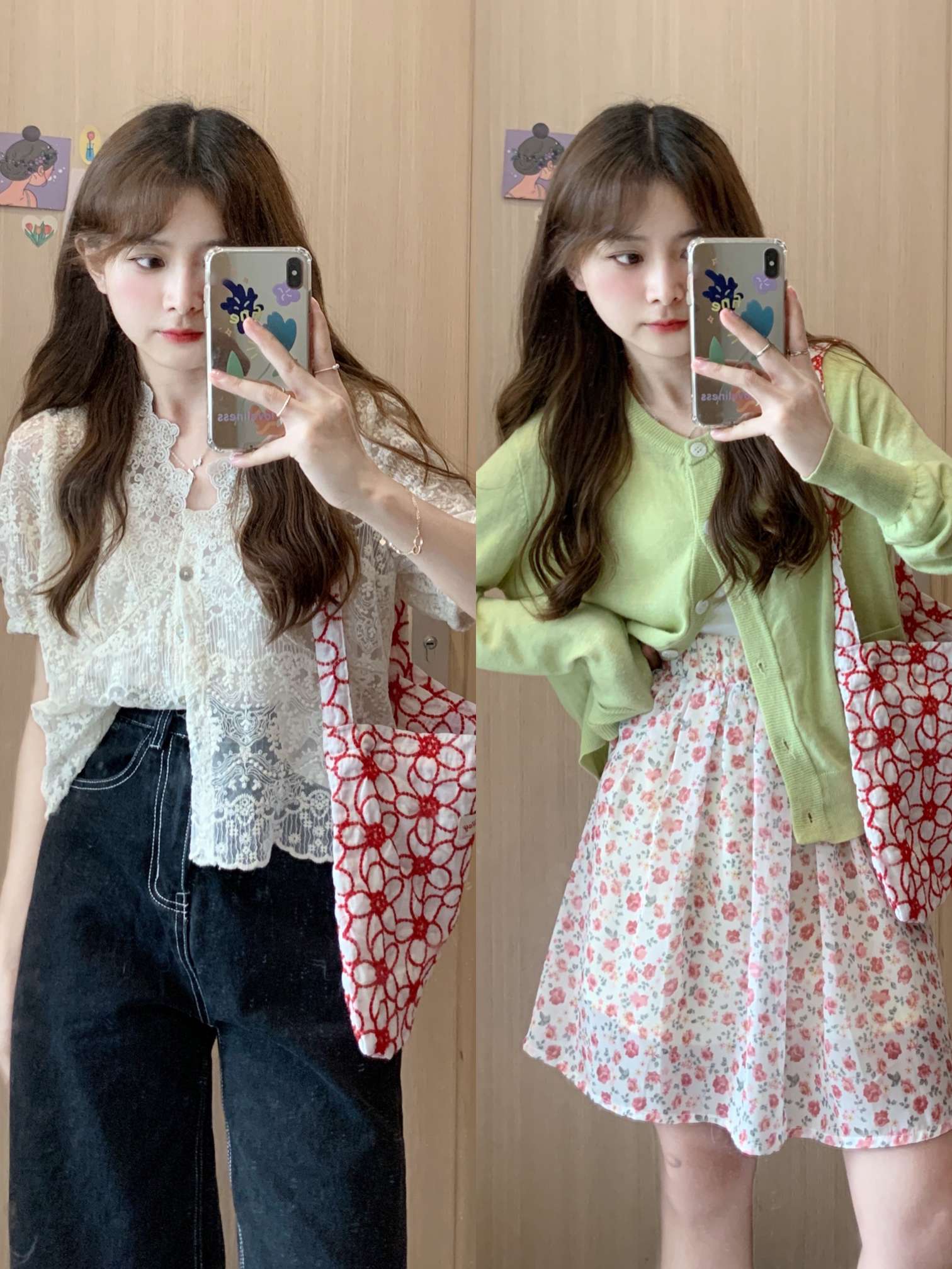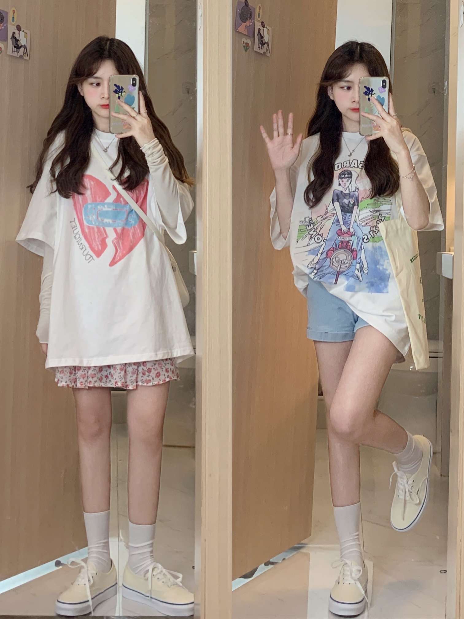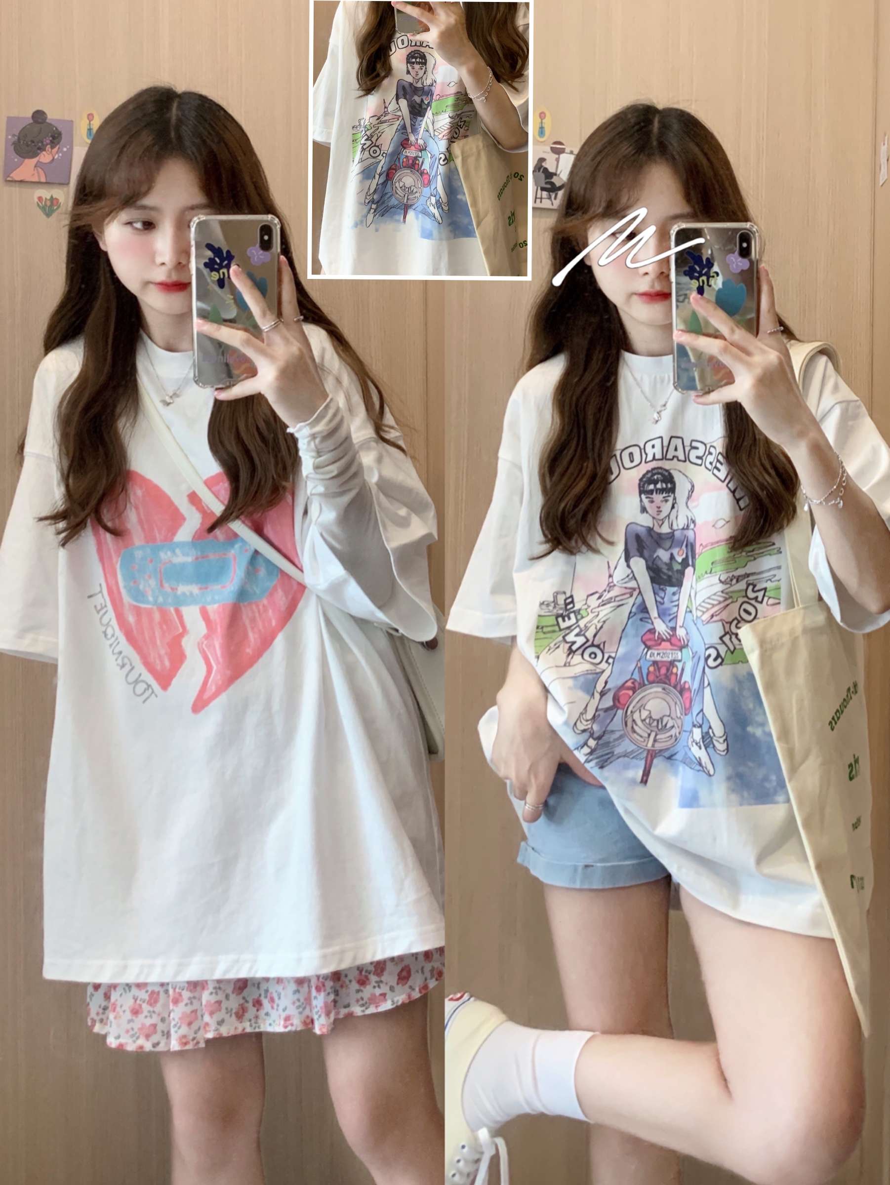 🟫今日分享 1️⃣ ▶︎杏色法式蕾丝短袖衬衫 | chan custom ▶︎黑色阔腿裤 2️⃣ ▶︎绿色小开衫 | (之前发过啦) ▶︎粉色碎花雪纺半身裙 | CUTEioi 3️⃣ ▶︎蓝色碎花雪纺连衣裙 | BLACKY 4️⃣ ▶︎白色美少女T恤 | MESSAROUND ▶︎浅蓝色牛仔短裤 5️⃣ ▶︎白色爱心T恤 | TOURNIQUET心碎创可贴 ▶︎粉色碎花短裙 | 同上 | 夏日...