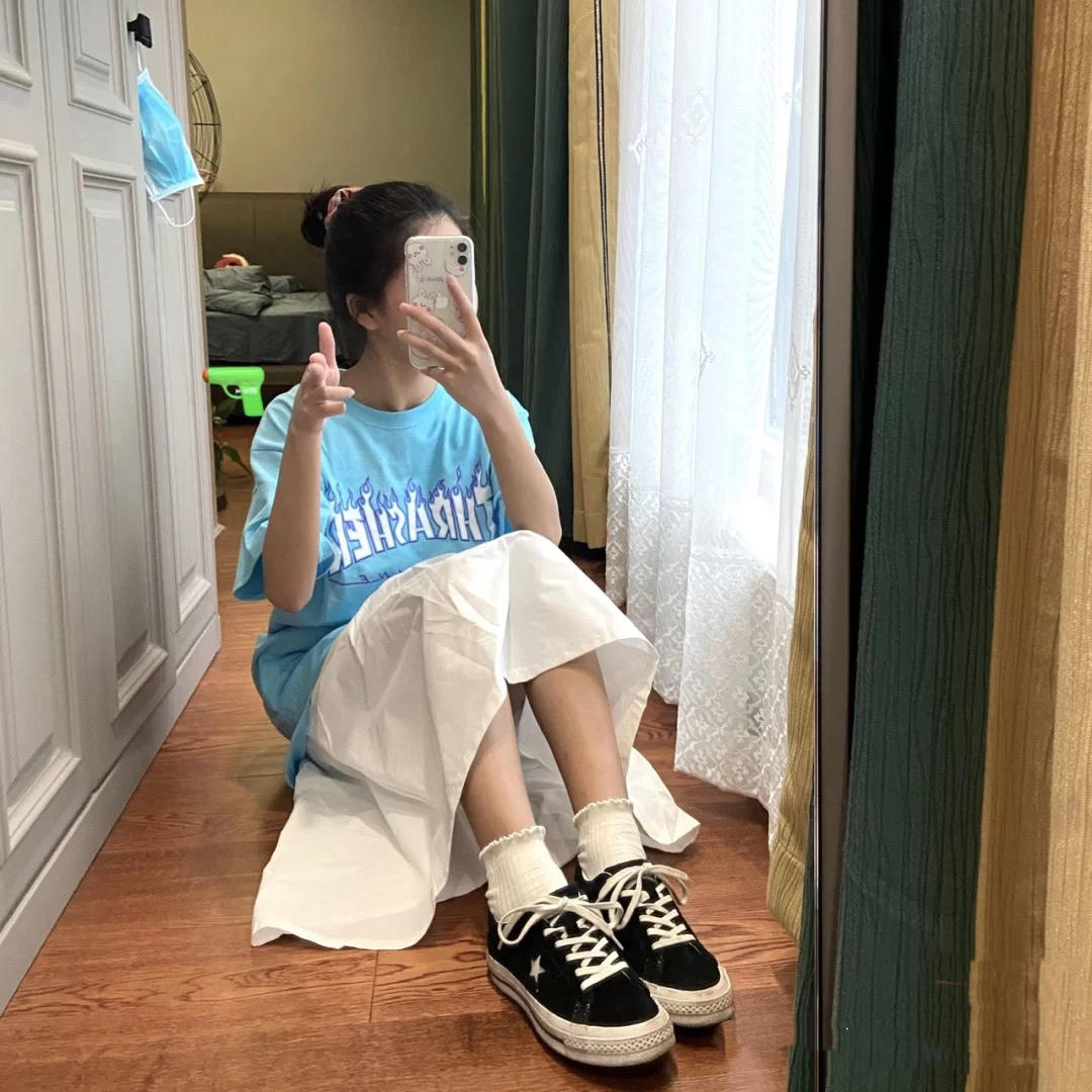 🧐大家好呀 我又来给大家分享穿搭啦 今天给大家带来的是【权志龙同款】Thrasher美版火焰短袖哦 🤨权志龙大概是很多女生心目中的男神吧!他的同款肯定摇买买买呀 因为四舍五入就等于和男神穿了情侣装咯哈哈 🥳不过权志龙的眼光也是真的好呀 这件婴儿蓝的短袖穿出去给人眼前一亮的感觉呀 下半身搭配一条白色的长裙 真的是很有夏天的感觉 很清爽的搭配哦 🤩这么好看的短袖真的不来一件嘛 🥴图片来自宝藏博主GO...