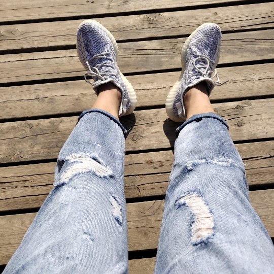 上衣 nike air x kim jones#Nike 鞋 yeezy 450#YEEZY 这个鞋的鞋型第一眼觉得丑爆了 看多了好像也还可以 鞋口是袜套的设计 比较紧 脚胖的或者脚踝比较粗的慎入