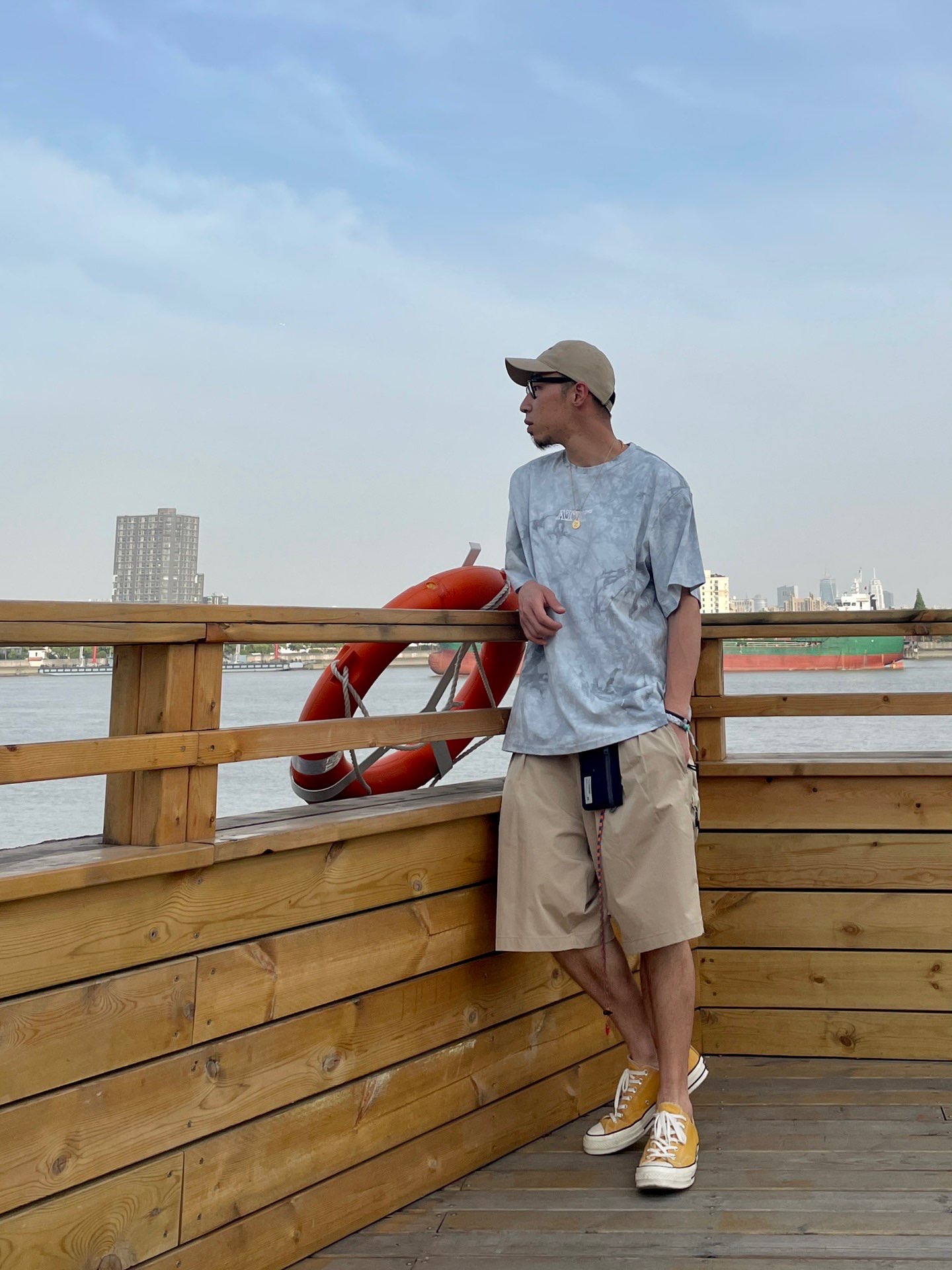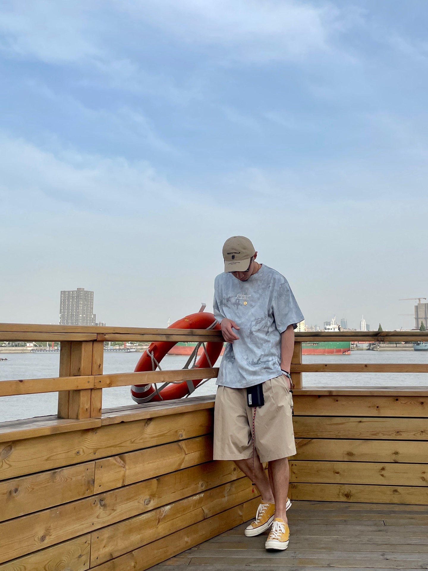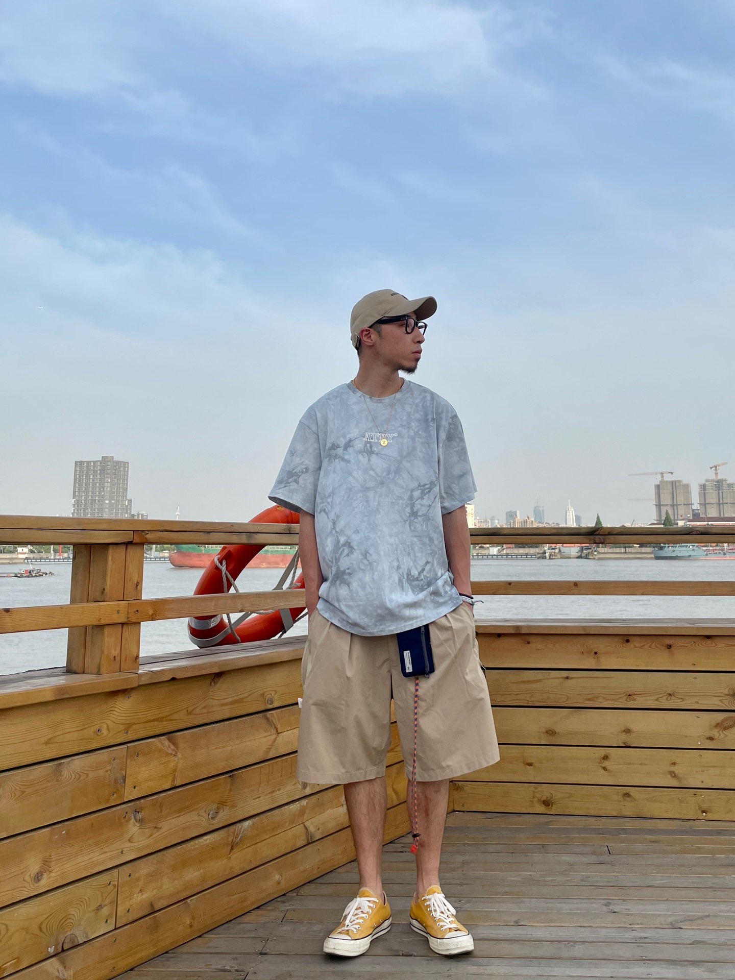 # 182 | 68kg 🐷 随性穿搭 丶 浅色系休闲穿搭~ 浅浅的扎染 个性不突兀~ 干净清爽的搭配组合~ 划重点~ 穿搭别忘了~色系呼应~不出错~~ 🧢 丶 Beentrill 📿 丶 apm “Z” 👛 丶 Madness 🪢 丶 小狮子🦁️回到未来 👕 丶 ATRY 扎染高街T 🩳 丶 714Street 技能短裤 👟 丶 Converse
