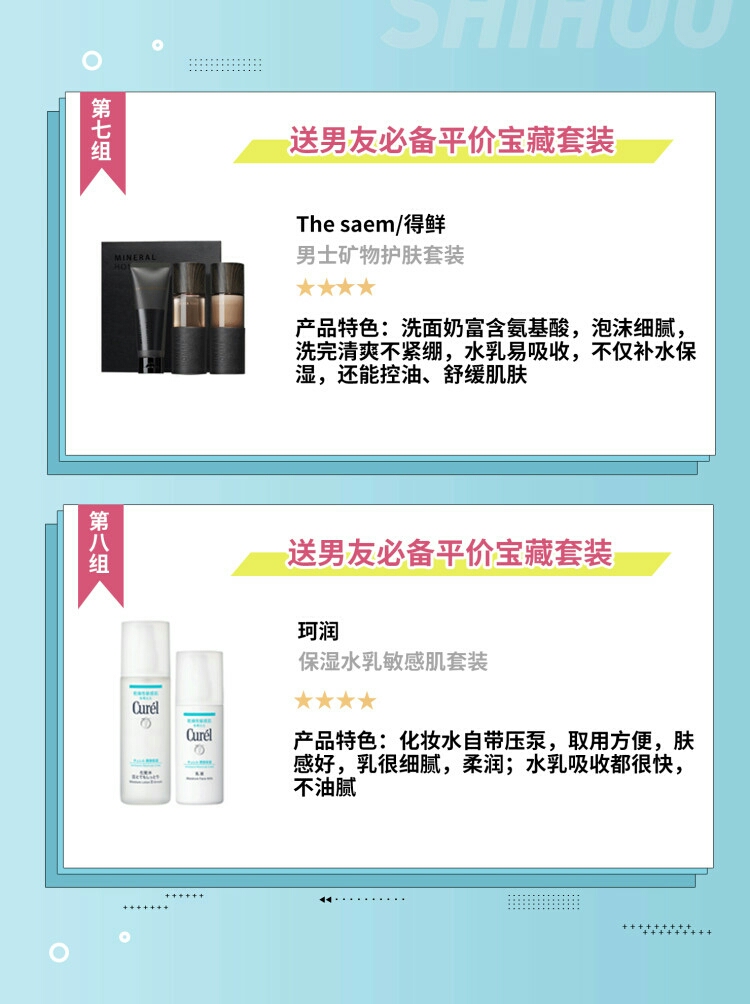 马上就是520💞了!女孩们都想好送什么礼物给男盆友了吗? 有没有想和我一样决定送水乳的🙋,因为自己也喜欢护肤,所以就想给男盆友的皮肤也整好些哈哈哈😜 特意搜罗了几款,都是比较平价的,嘻嘻因为毕竟还是学生党👀,钱包不算鼓hh 但是这几款都是看测评都挺宝藏👍的那种,希望男盆友用来颜值能够upupup! 🌵NO.1欧莱雅 男士锐能紧致护肤套组 售价:186/套 这款是洁面、露、霜一组的,洗护合一,个...