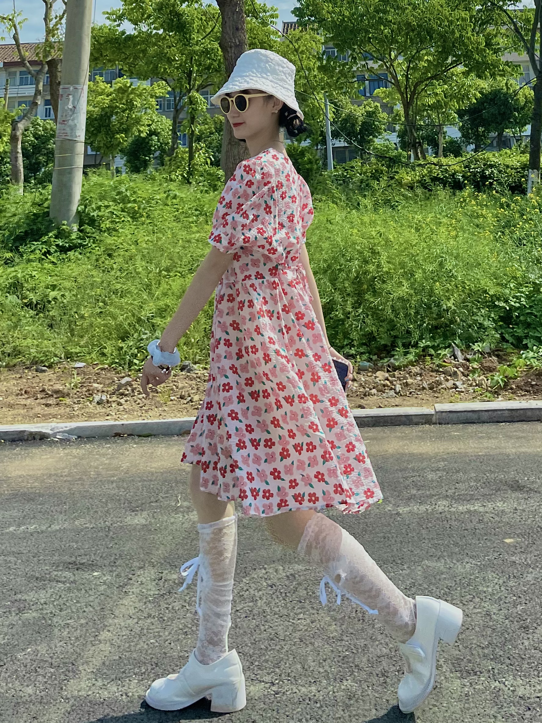 1️⃣闺蜜装闺蜜装来啦 甜妹系列 红粉花朵绝对搭配 真的超夏天 绝绝子 我们是甜美可爱组合! 2️⃣再来夸一夸我脚上的这双爱心蕾丝袜 超可爱 超百搭 少女日系Lolita蕾丝镂空中筒袜ins潮爱心抽绳袜子桃心堆堆小腿袜 配啥都好配哈哈哈哈 买到手炒鸡便宜12💰快🐛哇!!