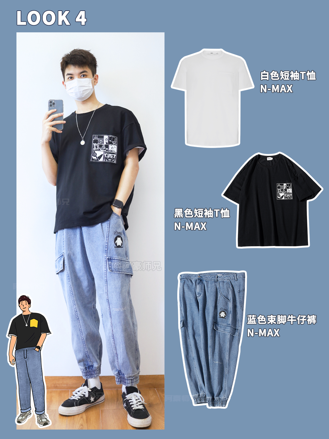 hello!我是阿豪师兄 分享一下放假回来这几天的穿搭😆 相信有不少朋友在假期的尾巴想着挑选一套喜欢的衣服迎接接下来的日常穿搭,本期师兄就给大家挑选4️⃣套搭配,胖胖的男生也很适合穿✅轻松修饰身材,相信你会成为别人心里那个会穿搭的人💯 . 👔衣服&牛仔裤:N-MAX 🩳休闲短裤:HUSTLIN . look1️⃣ 黑短袖T恤(可内搭白T)➕休闲五分短裤 . look2️⃣ 黑短袖T恤(可内搭白T)...