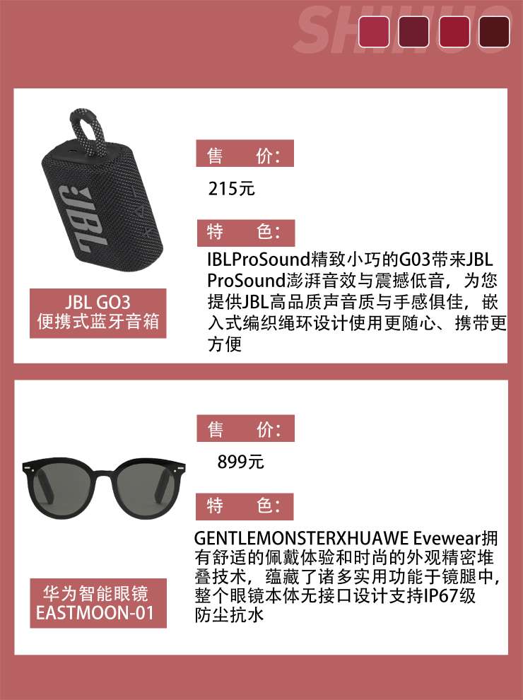 ❶华为Gentle Monster Eyewear 智能眼镜 售价:899 特色:👓GENTLEMONSTER-HUAWEI EYEWEAR智能穿戴的全新起点GENTLEMONSTERXHUAWE Eyewear是一款兼具时尚与科技的智能穿戴设备,😀让生活和沟通变得更加舒适便捷。 ❷Bose SoundSport Free Wireless入耳式耳机 售价:813 特色:THE BOSE SOU...