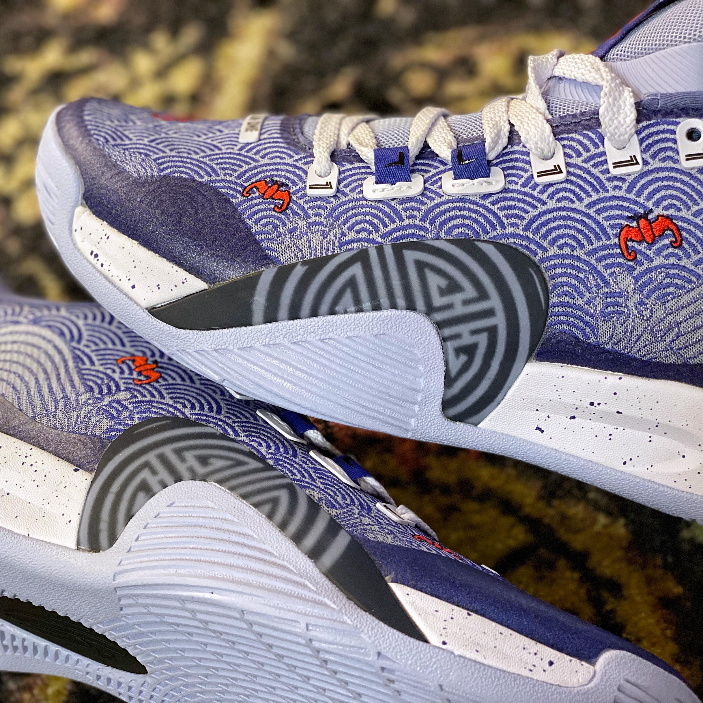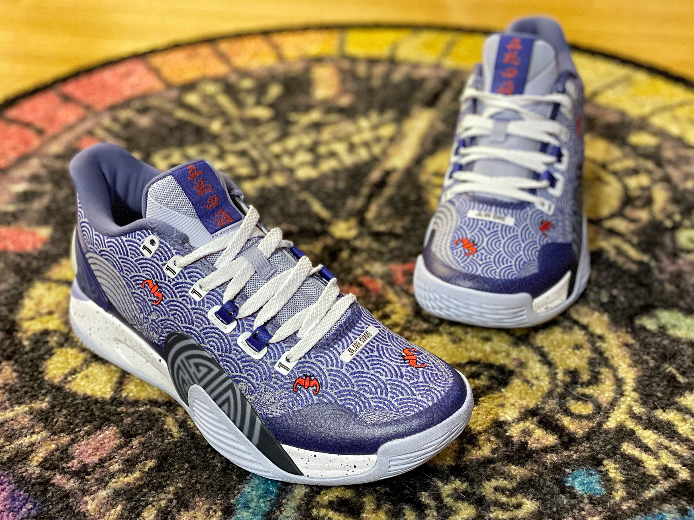 JLIN One 作为林书豪的第一款签名鞋 也是特步近年篮球鞋的代表之作 于去年8月的时候发布 直到如今依然有着层出不穷的新配色 这一款以谐音梗命名的“五福四海” 以青花瓷风格的纹路 作为主要元素 鞋面图案如同祥云 又似大浪淘沙 构建出重峦迭浪的起伏感 这样的设计 在实物拿到手上的时候 比看图片会更有质感 后跟则以古文字书写了“庚子年制于特步” (原谅我研究了一周都没有看出来) 将中国风的细...