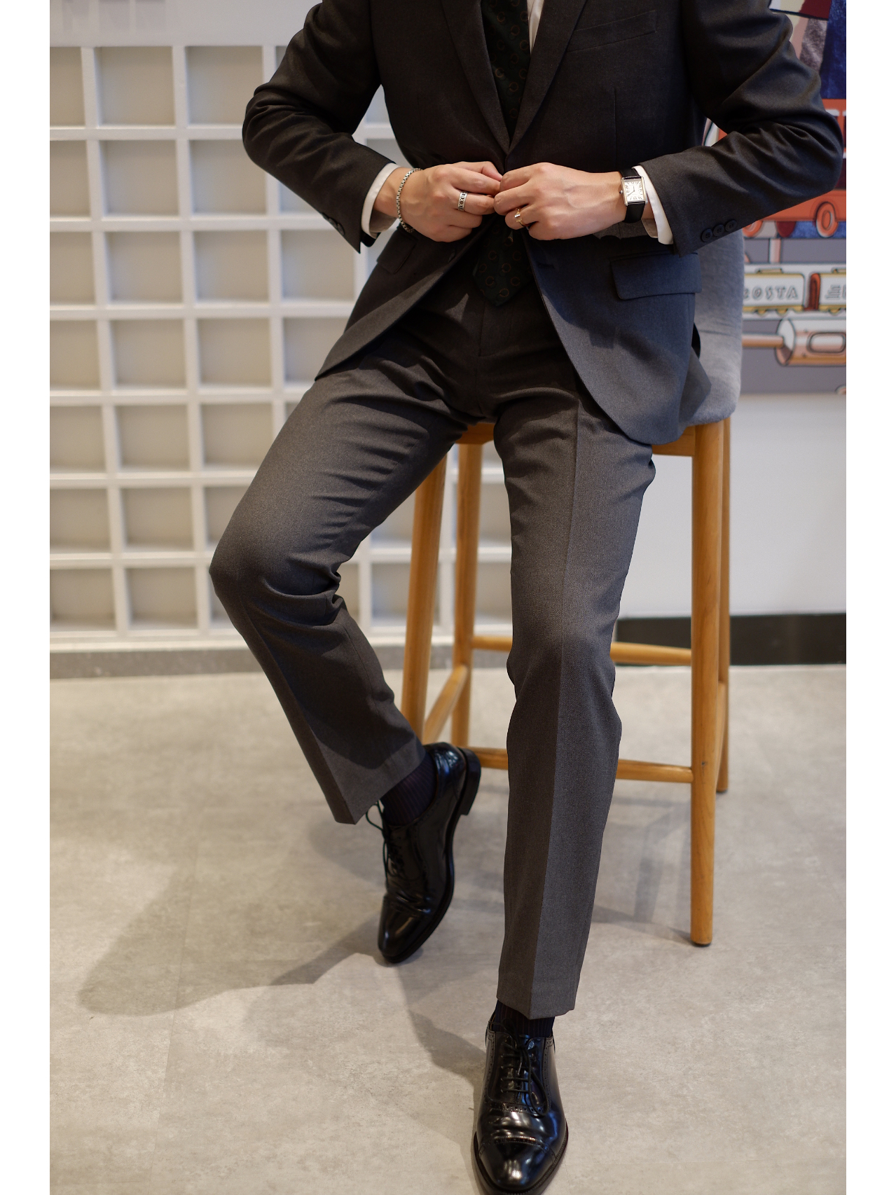 这套灰色西装是属于常规版型,颜色也是很好看深灰色