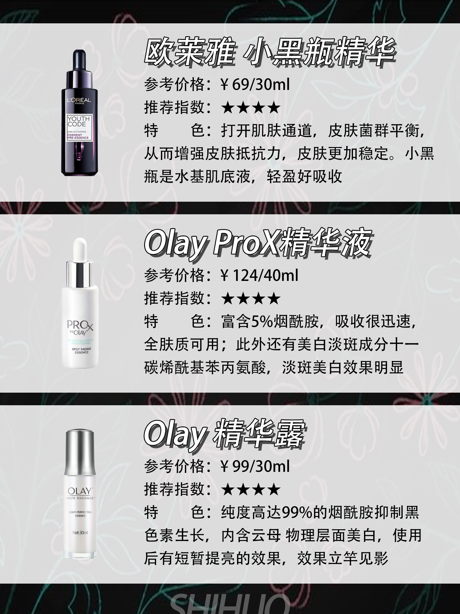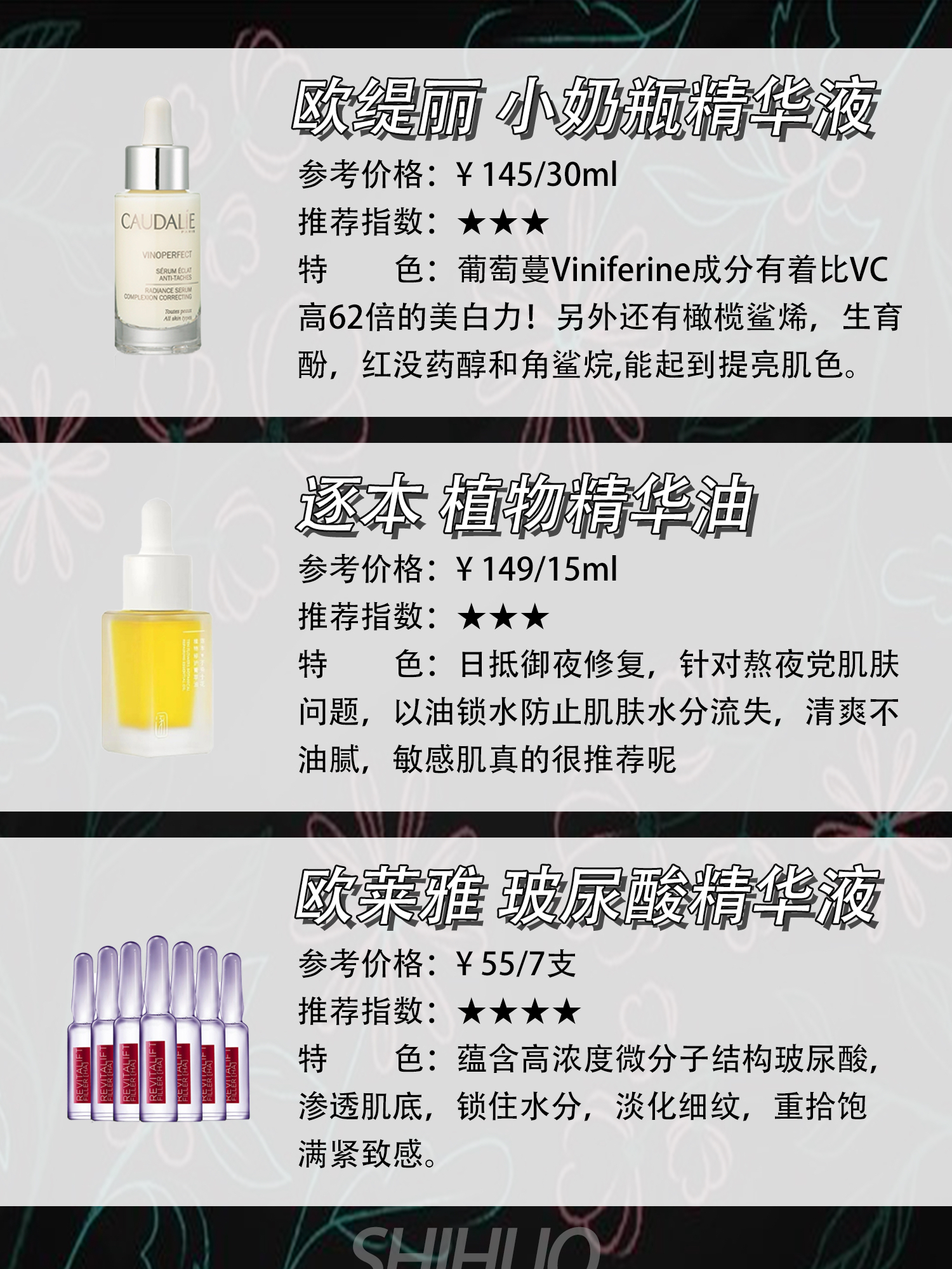 本篇笔记关联了L'OREAL/欧莱雅 小黑瓶酵素黑精华肌底液 抗皱保湿收缩毛孔抗老淡纹 3.0、CAUDALIE/欧缇丽 美白精华淡斑小奶瓶 保湿淡痘印提亮焕白敏感肌 正装、悦诗风吟 小绿瓶绿茶籽精粹水 80ml等商品,为用户提供真实的使用体验和购买参考。