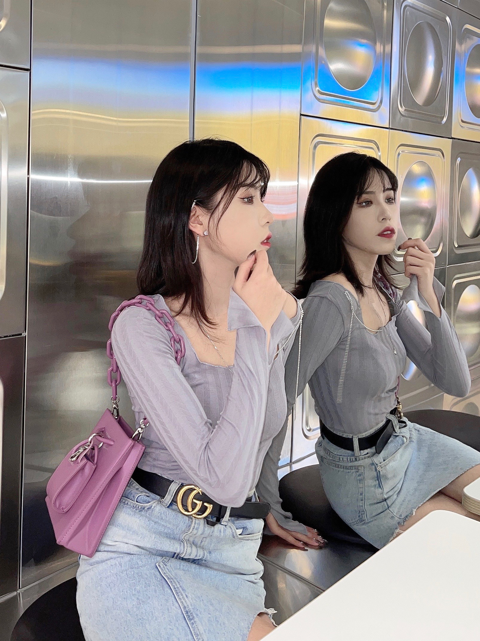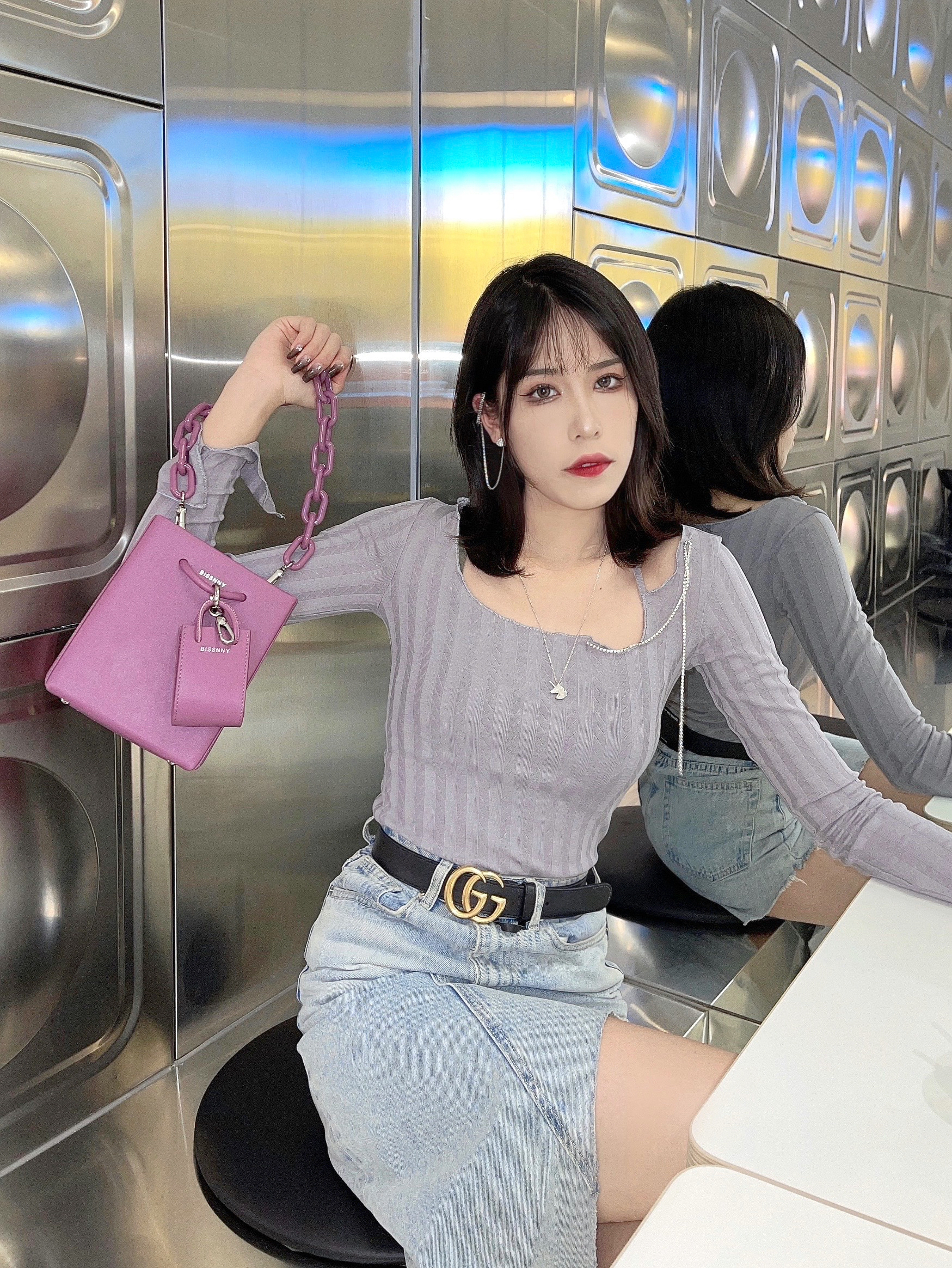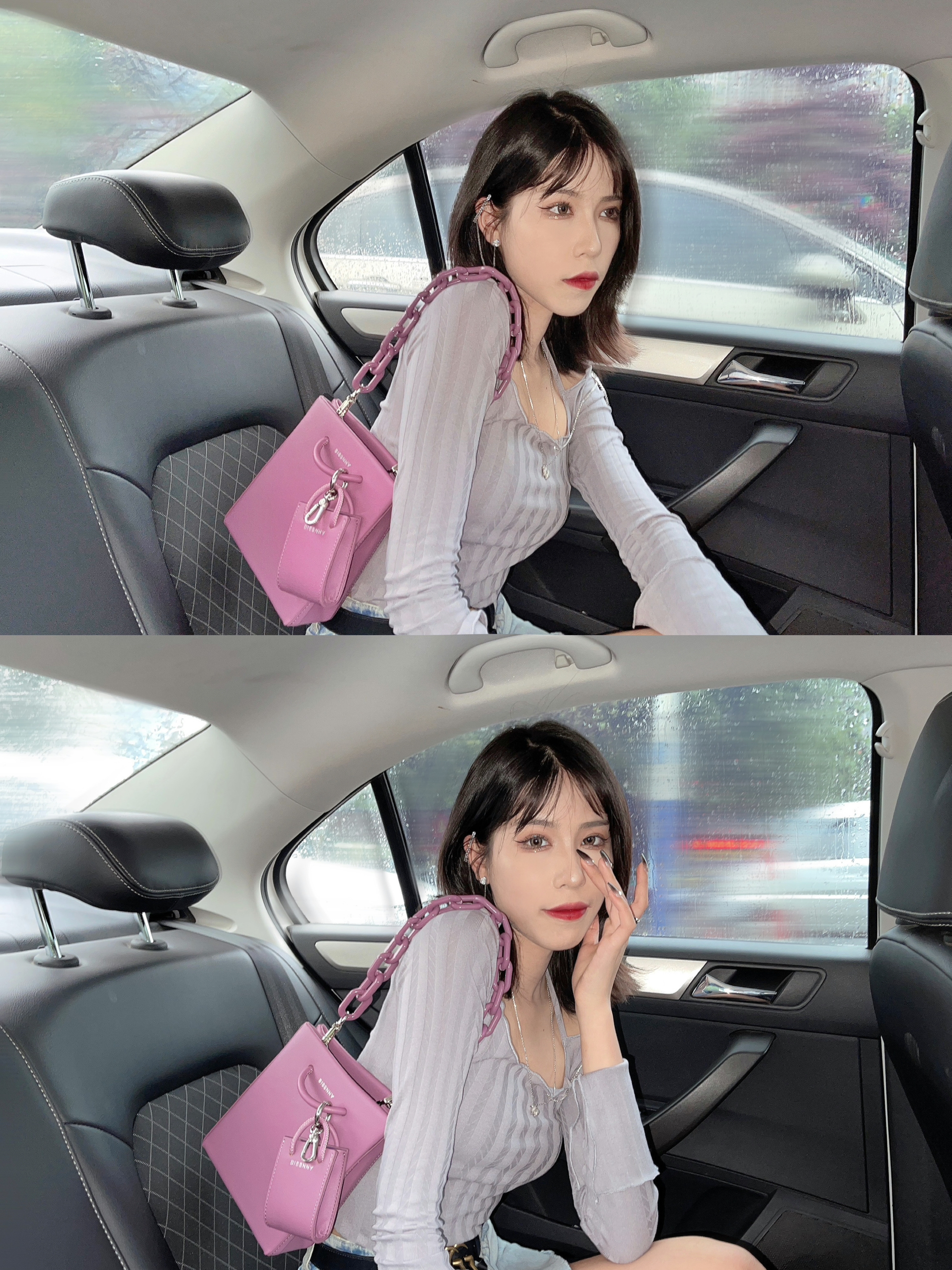 最近真是不缺外拍的穿搭呀🌷 分享一个下雨天还出门在外的我 不过这次穿了本命牛仔裙~ ————————— 🌷上衣:sixone六一 不规则的针织小长袖 芋泥波波奶茶颜色 小露肩搭小钻链好心机~ 🌷半裙: 大王的牛仔半裙每次穿我朋友都夸腿长 应该是真的显高吧 🌷包包:BISSNNY原创设计包包 由于太喜欢 继上次蓝色的那个小包吼 我又拿了个香芋紫 太nun了 爱了❤️ 🌷项链:Dan Dream 可可...