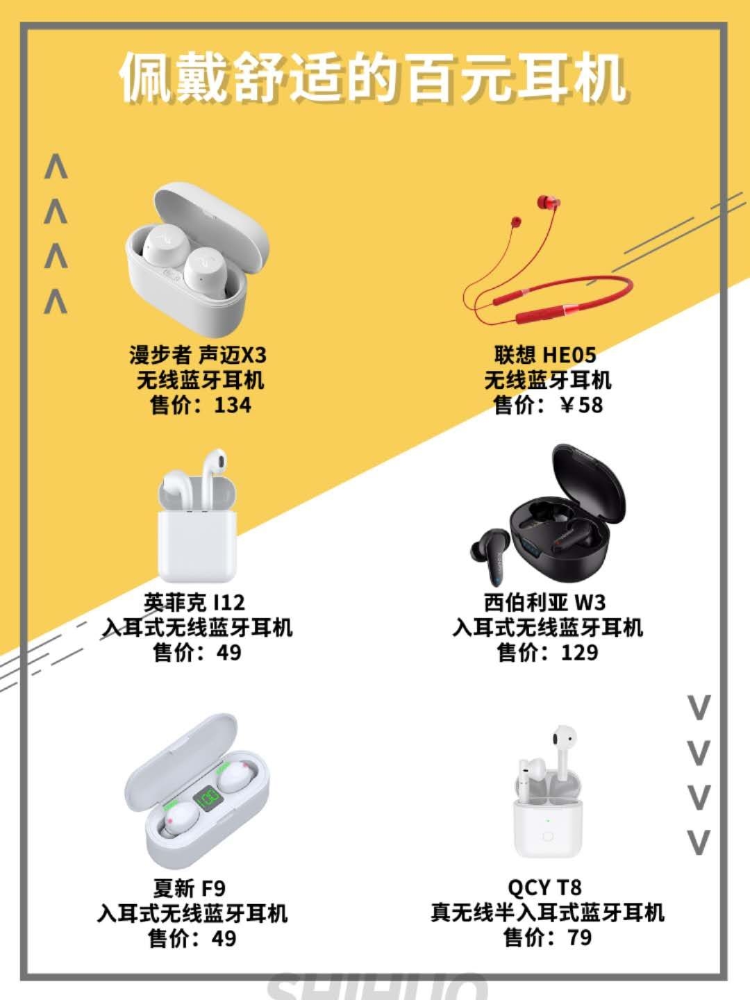 这几款百元耳机佩戴十分的舒适,不属于那些上千的耳机,让我们一起来看看吧。 漫步者 声迈X3 无线蓝牙耳机 售价:134元 特点:做工质感很好,音质好,没有杂音,贴合耳朵很舒适,不容易掉,续航能力超好。适用于对小品牌不了解,信任大品牌的人群。 Lenovo/联想 HE05 无线蓝牙耳机 售价 58 特点:磁吸式耳机壳,加上项圈设计,可以任意弯折,机身材质用金属和塑料结合,耳机为入耳式耳机,采用了...