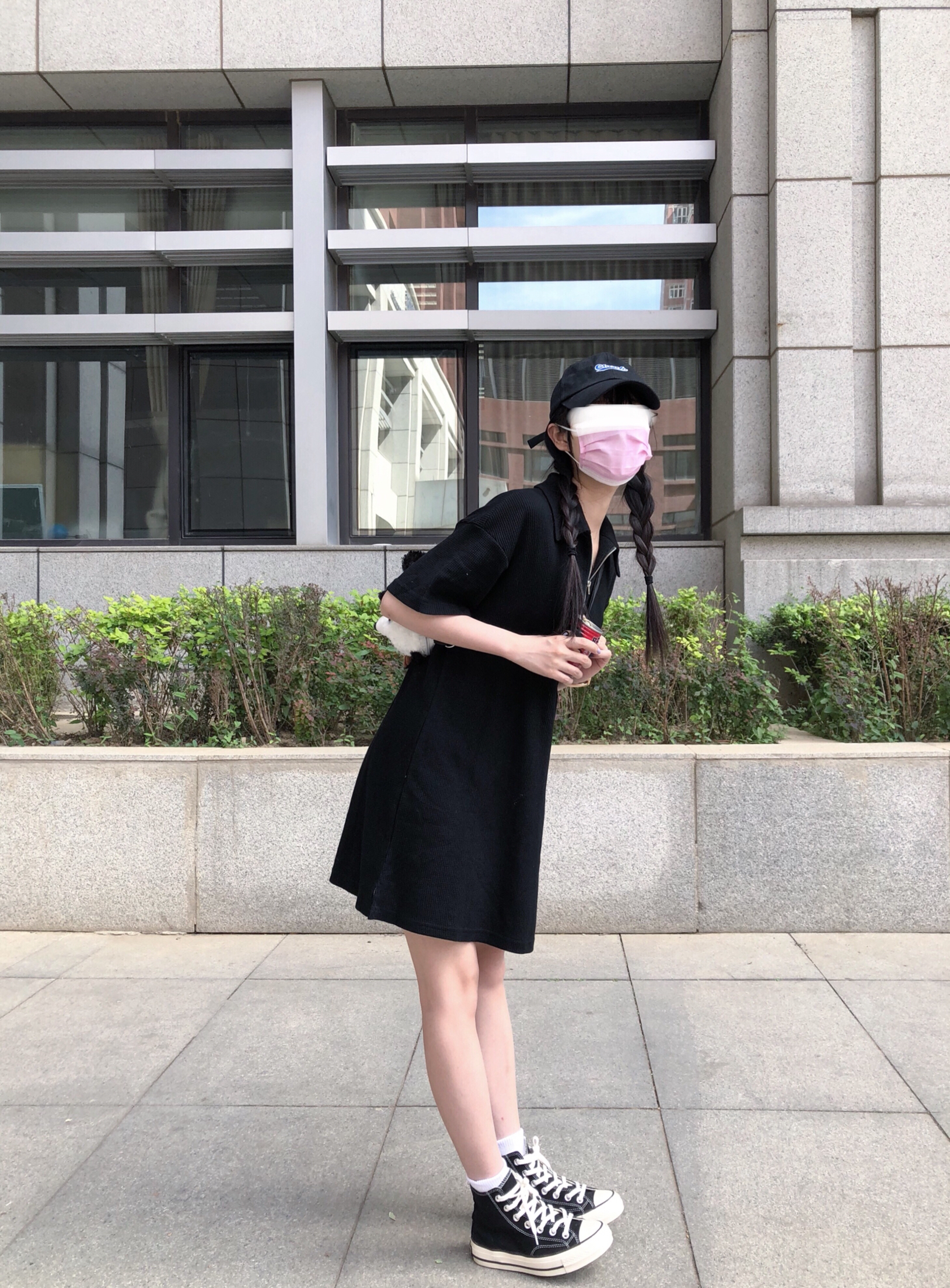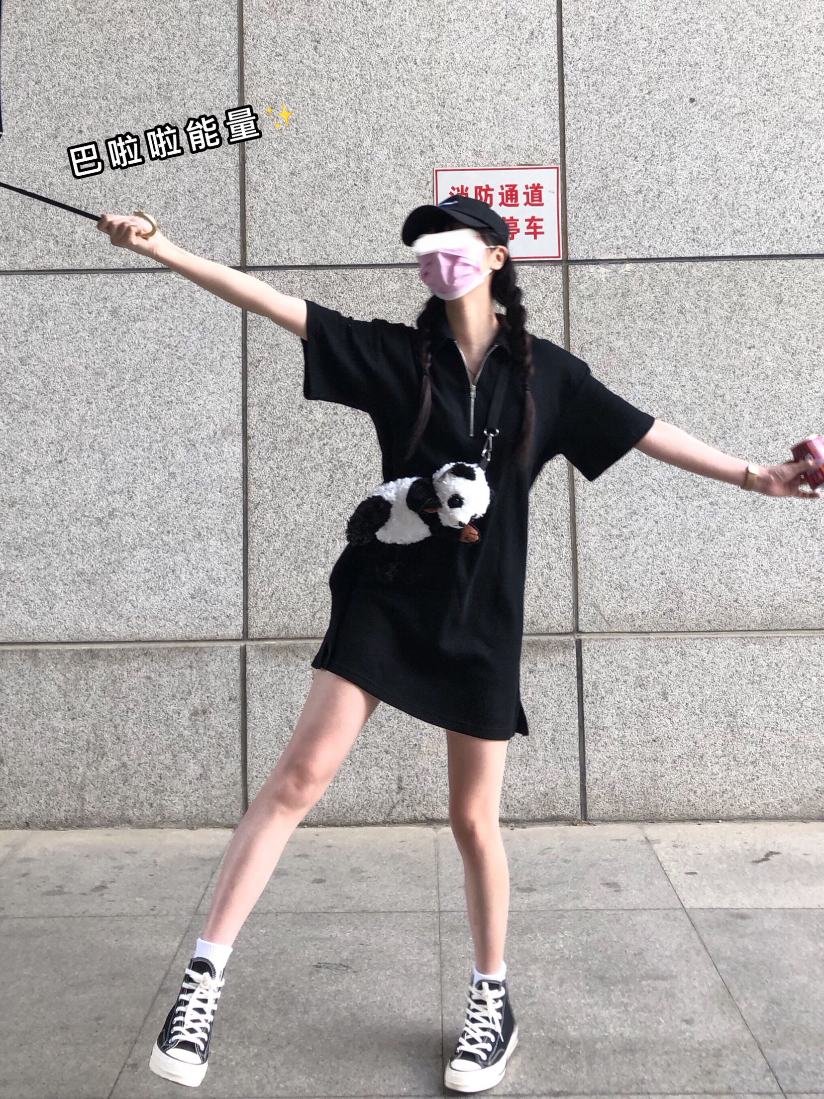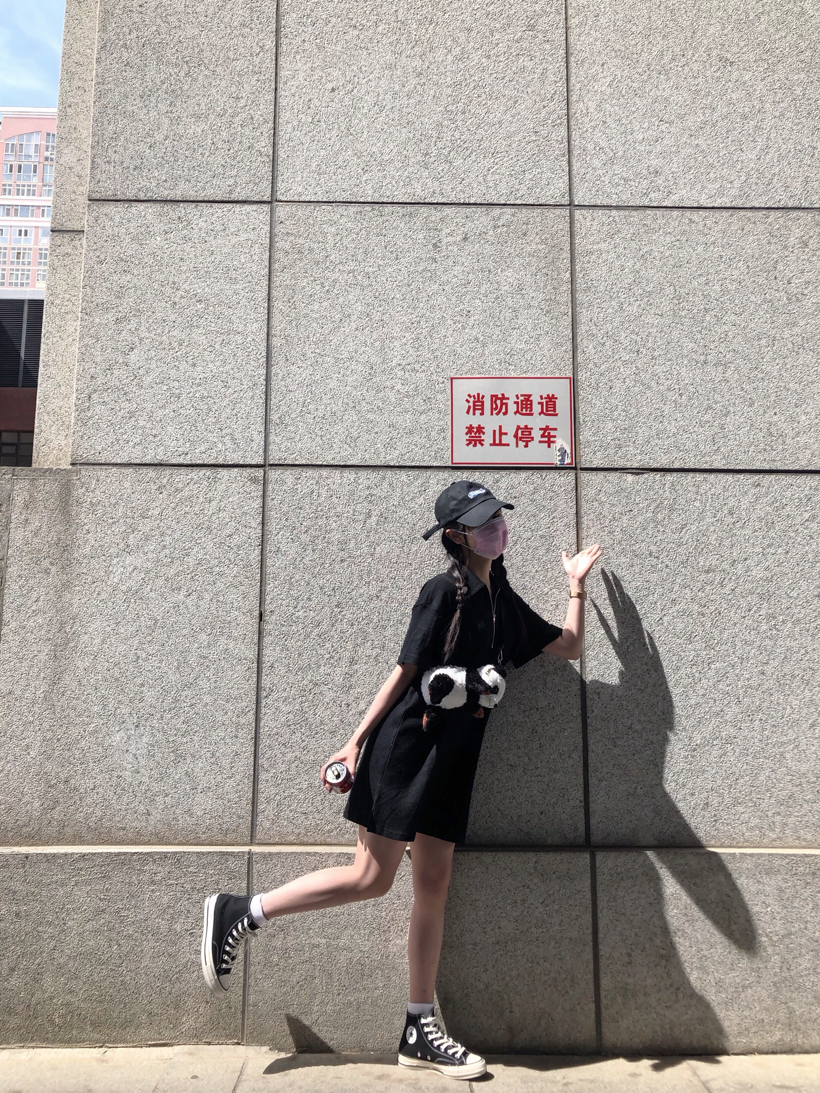 all black也可以青春满满! 裙: 哒哒sama 👟:CONVERSE1970s 🐼包:买太久🔗失效啦 🧢:1688义乌市金粟电子商务