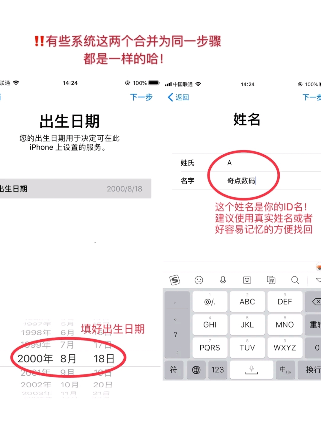 你们要的教程来啦~ 有些集美和铁汁是第一次使用苹果手机 到了要下载APP的时候才发现没有苹果ID下不了😂😂😂 非常理解大家对于创建ID的步骤不是很清晰 超简单教程安排上😘😘😘 ✅打开【设置】—【登陆iPhone】— 【没有或忘记Apple ID】—【创建Apple ID】 📱因为系统版本不同,以下步骤略有先后之分 ✅【填好出生日期和姓名】 这里有个小tips:姓氏和名字,一定要记住这个是名字...