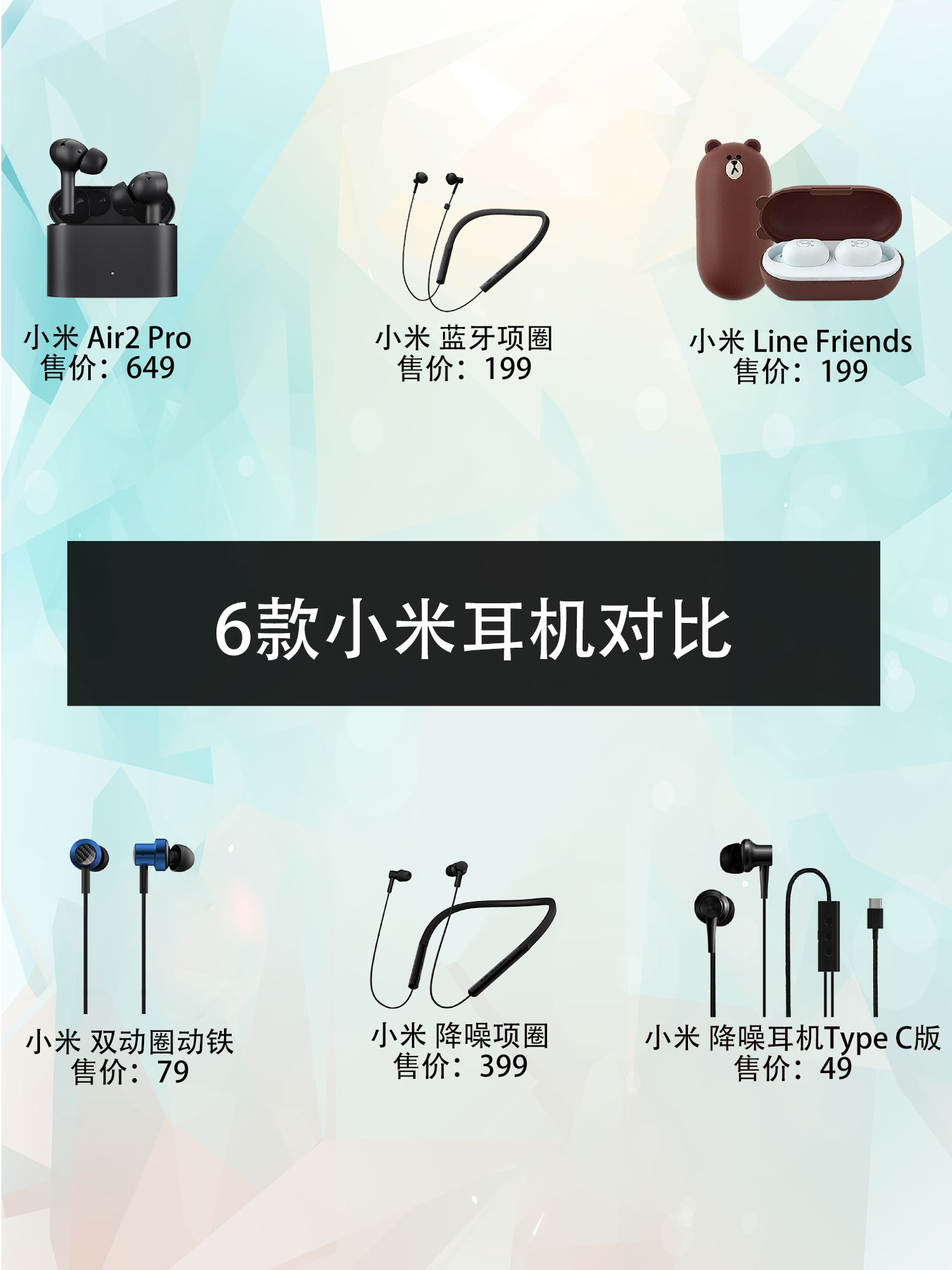 小米是国内知名的科技集团之一,小米旗下的产品都很不错,下面进行6款小米耳机对比 小米 蓝牙项圈 售价:199 特点:采用了亲肤橡胶材质加磨砂金属,佩戴舒服,并且防水性不错,磁吸式设计,音质方面,中频层次感很强,低频不错的下潜,细节部分表现也很好,可持续听歌7小时,适合爱运动的小米用户使用 小米 Air2 Pro 售价:649 推荐指数:⭐⭐⭐⭐ 特点:主动降噪面对常见的噪音,通话降噪。在耳内加...