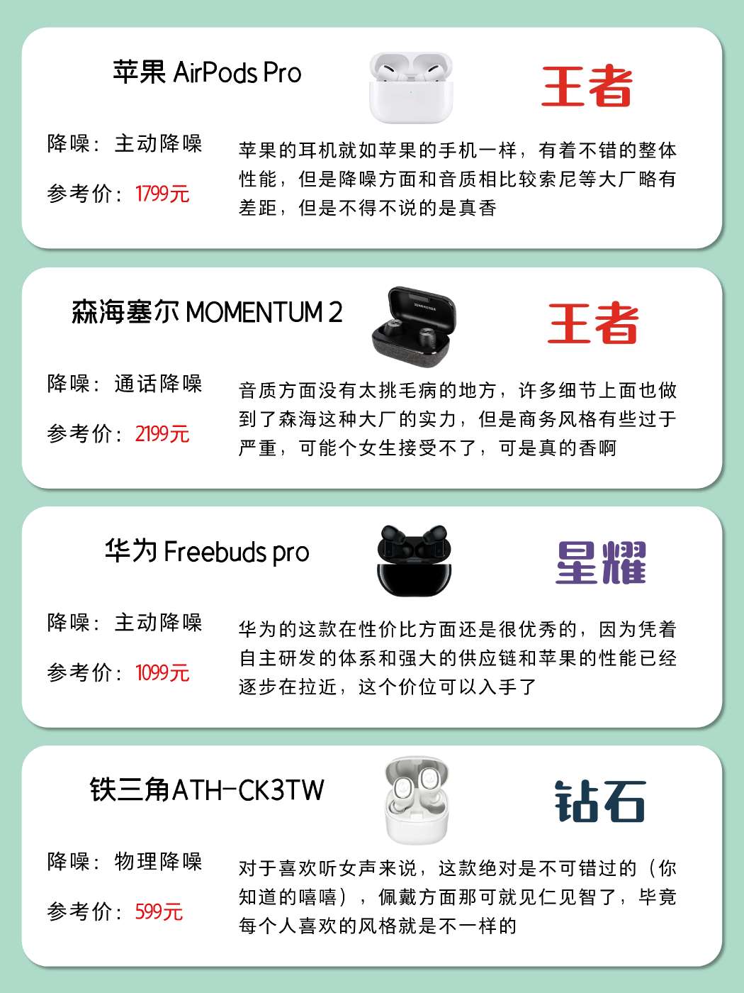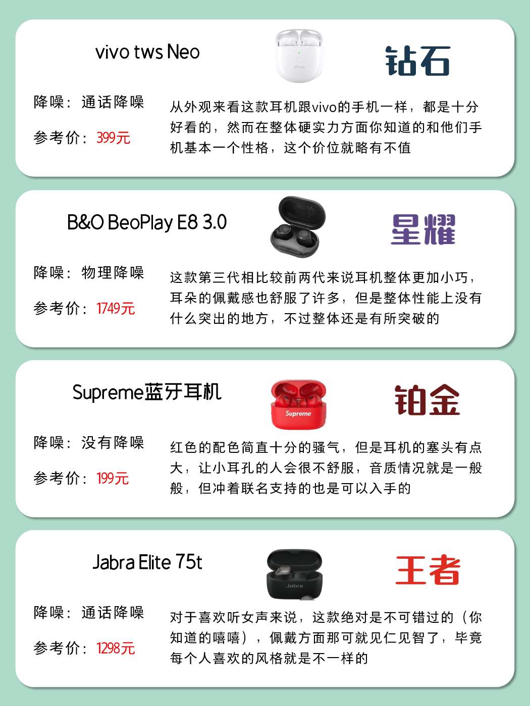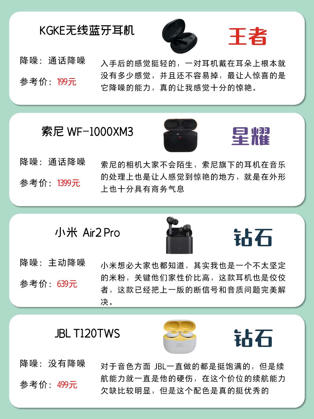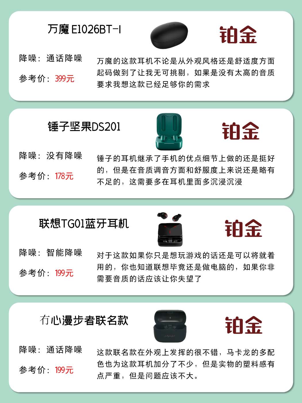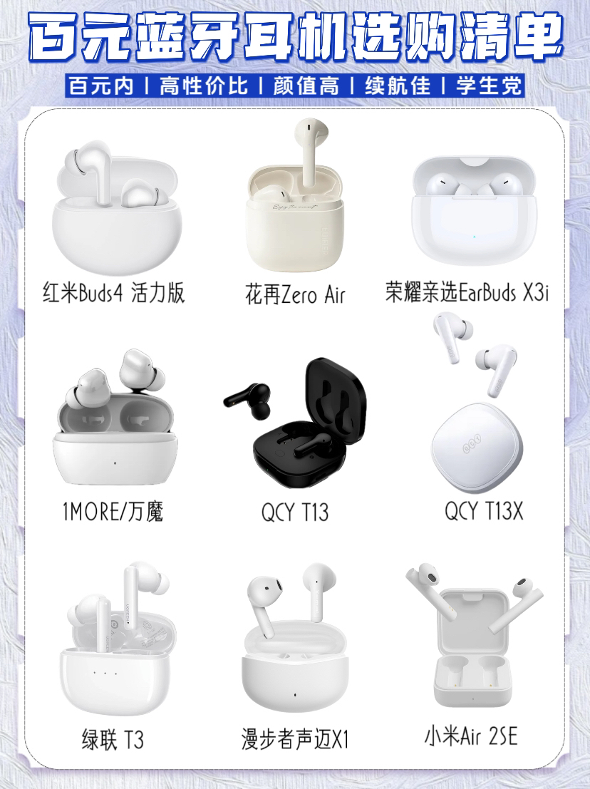 人气6.18蓝牙耳机攻略,自用耳机测评 现在距离6.18越来越近了 还有一个月的时间大家准备好了吗 其实我这就可以为大家推荐一款 那就是蓝牙耳机 说起耳机,想必这东西基本上已经和手机一样 成为了大家家里面的必需品 但是选择耳机的时候总是会迟疑 不知道到底该怎么选择才算正确 现在我就为大家制作了一个表 这就分享给大家快去参考一下吧!
