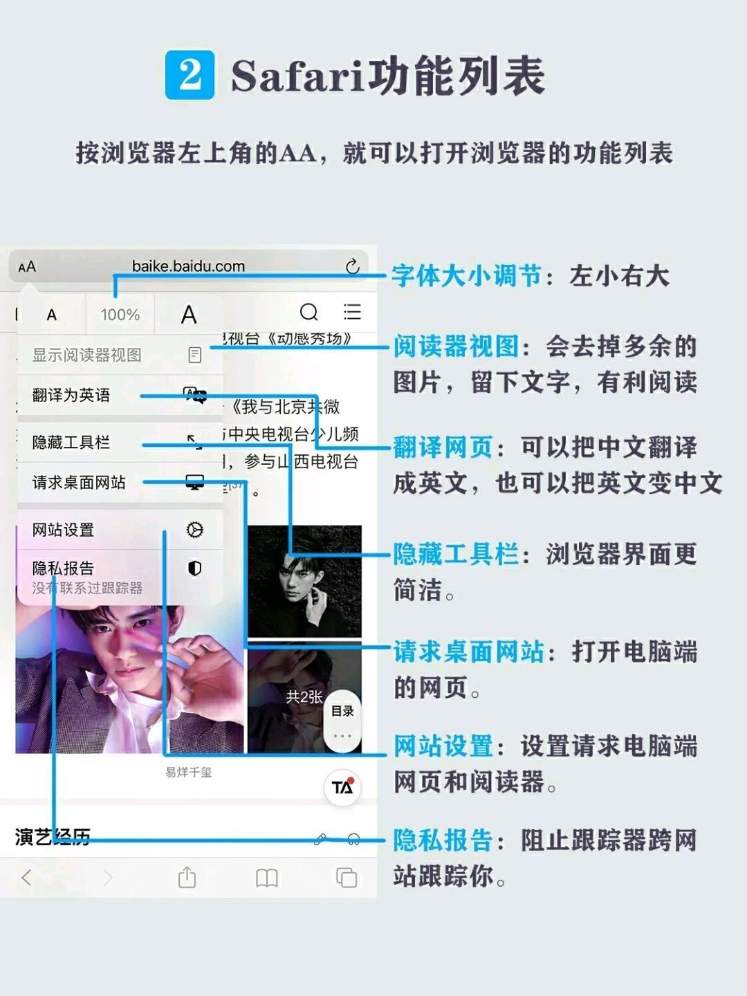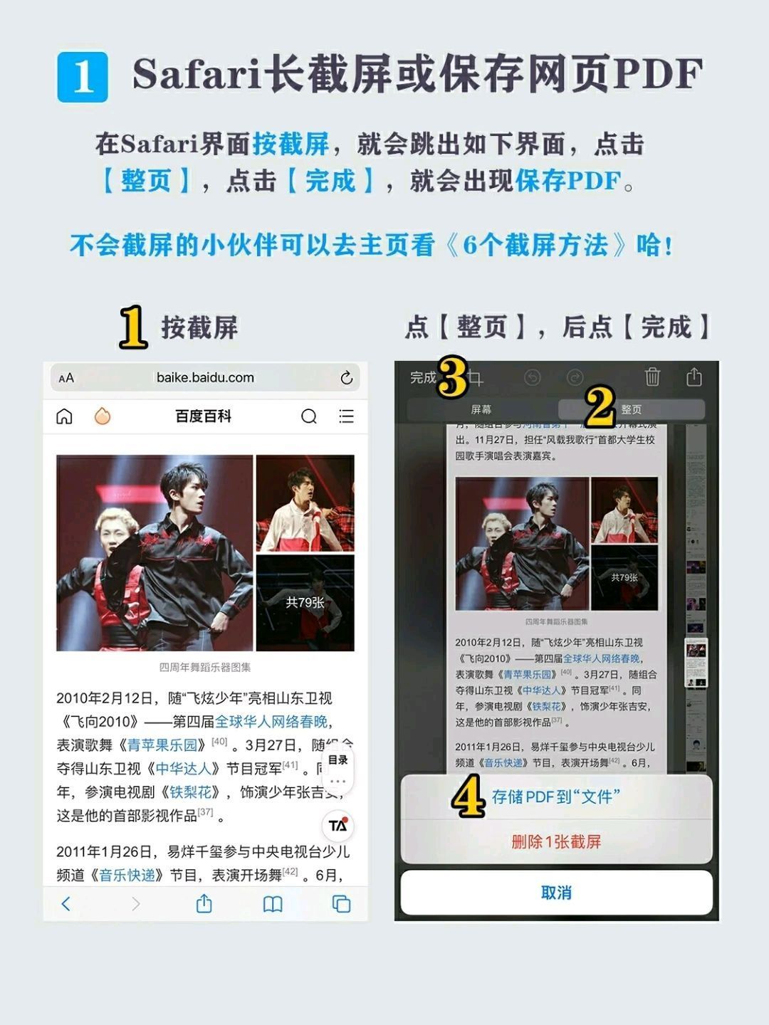 iphone自带的浏览器表面看来功能不多,实际上非常强大,分享一些小技巧给大家,希望能给你在工作或生活上的使用带来方便呀👇🏻👇🏻 1⃣️Safari长截屏或保存网页PDF 2⃣️Safari功能列表 3⃣️Safari页面搜索 4⃣️Safari页面批量关闭 🌈这就是本期全部内容,还有什么其他问题可以关注❤️我并留言🌟哦,我都会回复。有需求可以告诉我哦🎉