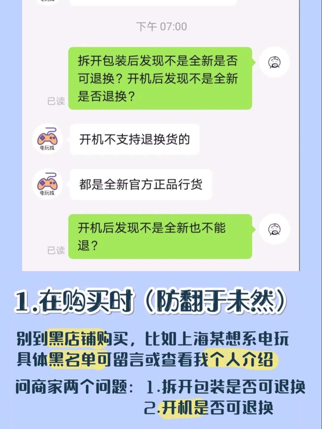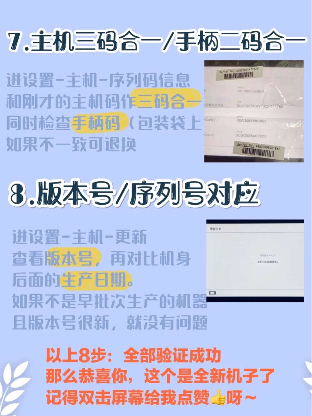 💡【以下为文字详细版】内容较长,建议收藏后对着机子一步步验证。 目前Switch价格降下来了,但市场上存在较多 翻新全新 混卖现象。我建的Switch群里屡屡有小伙伴中招。关于如何避开黑店铺可查看我个人介绍 🌟1:在购买时(防“翻”于未然) 最好先询问商家:拆开包装后发现不是全新是否可退换?开机后发现不是全新是否退换? 购买前确保这一点,防止商家后面找借口不退换商品。就算之后315或者小二介入...