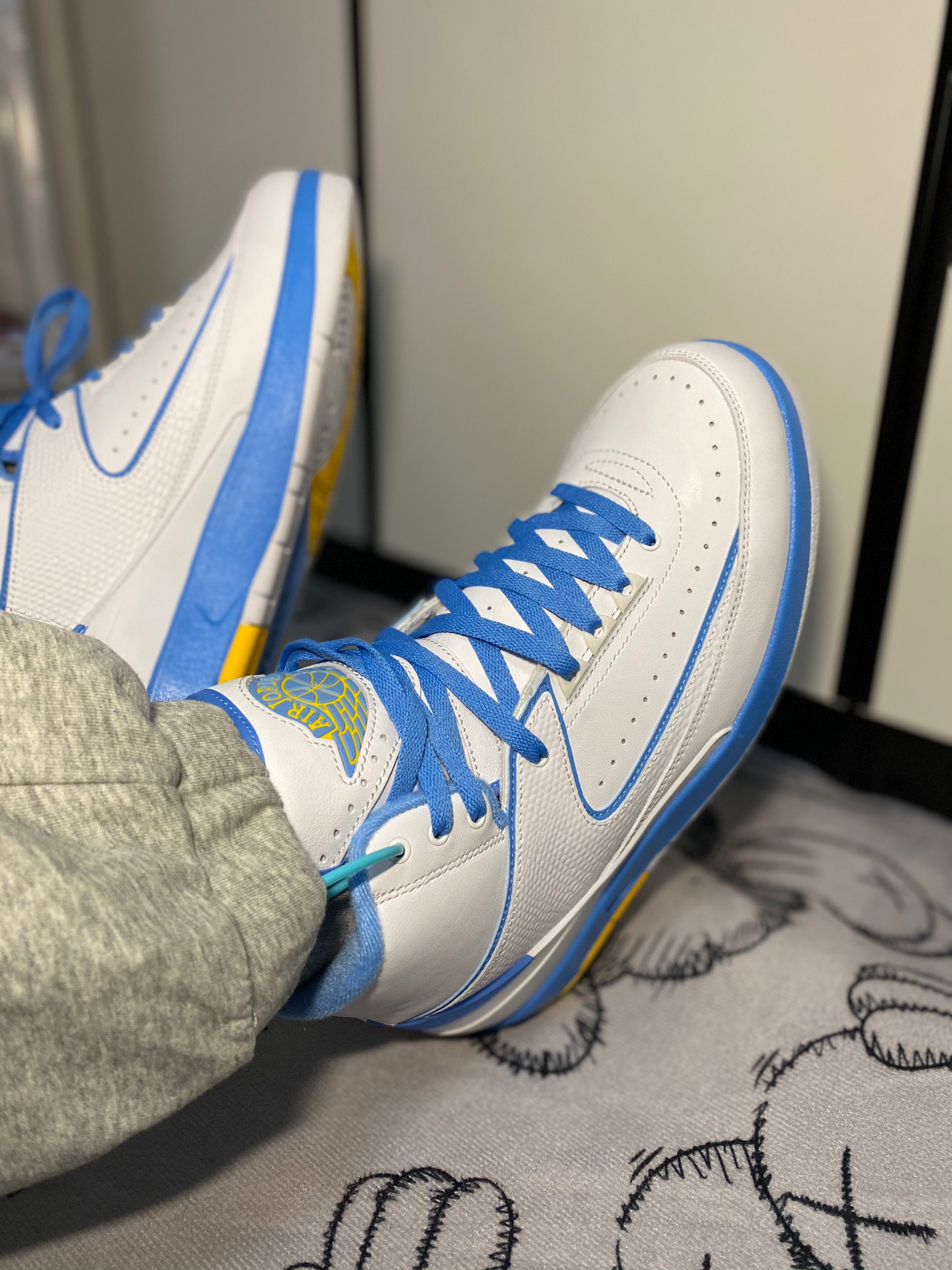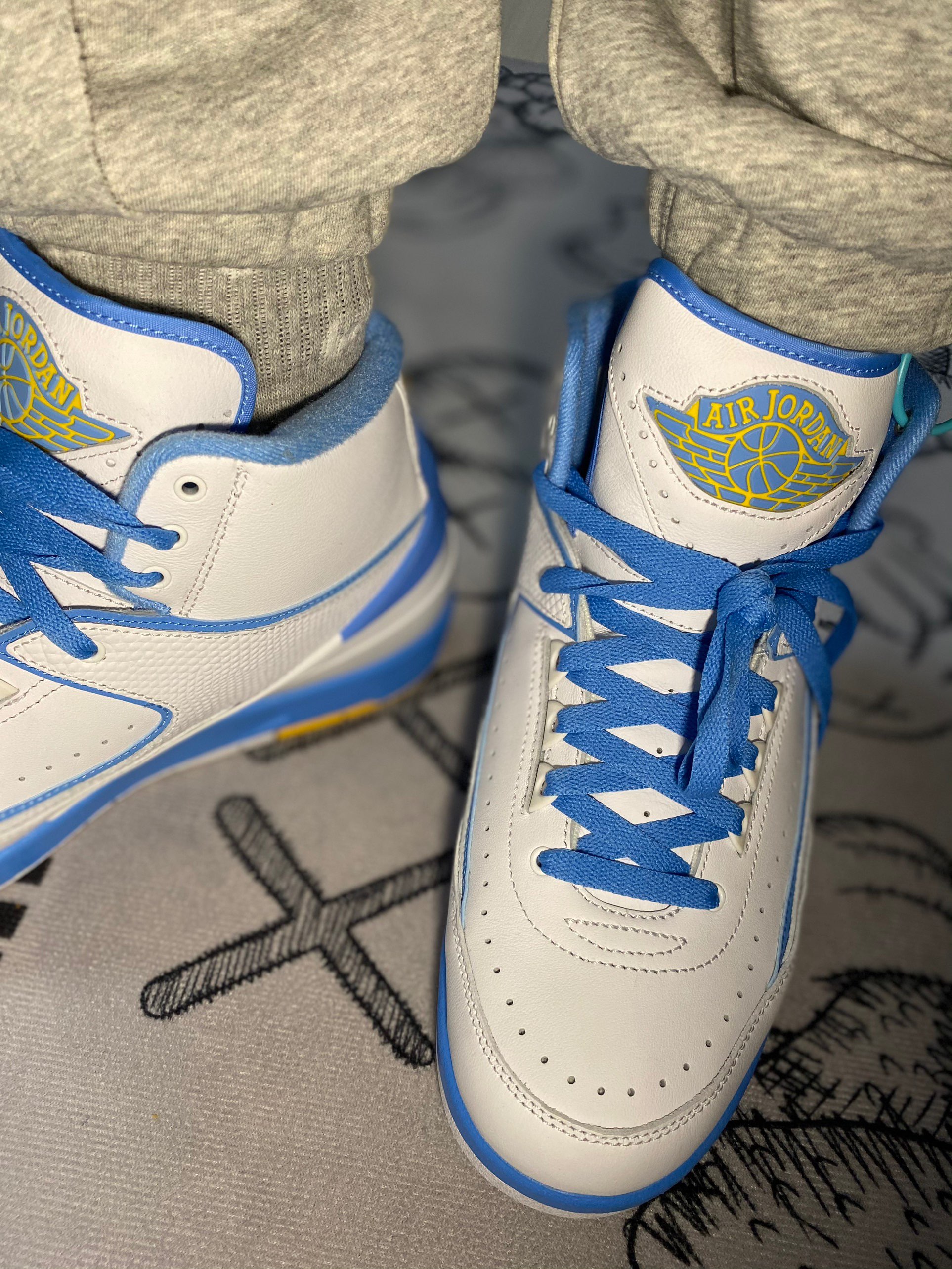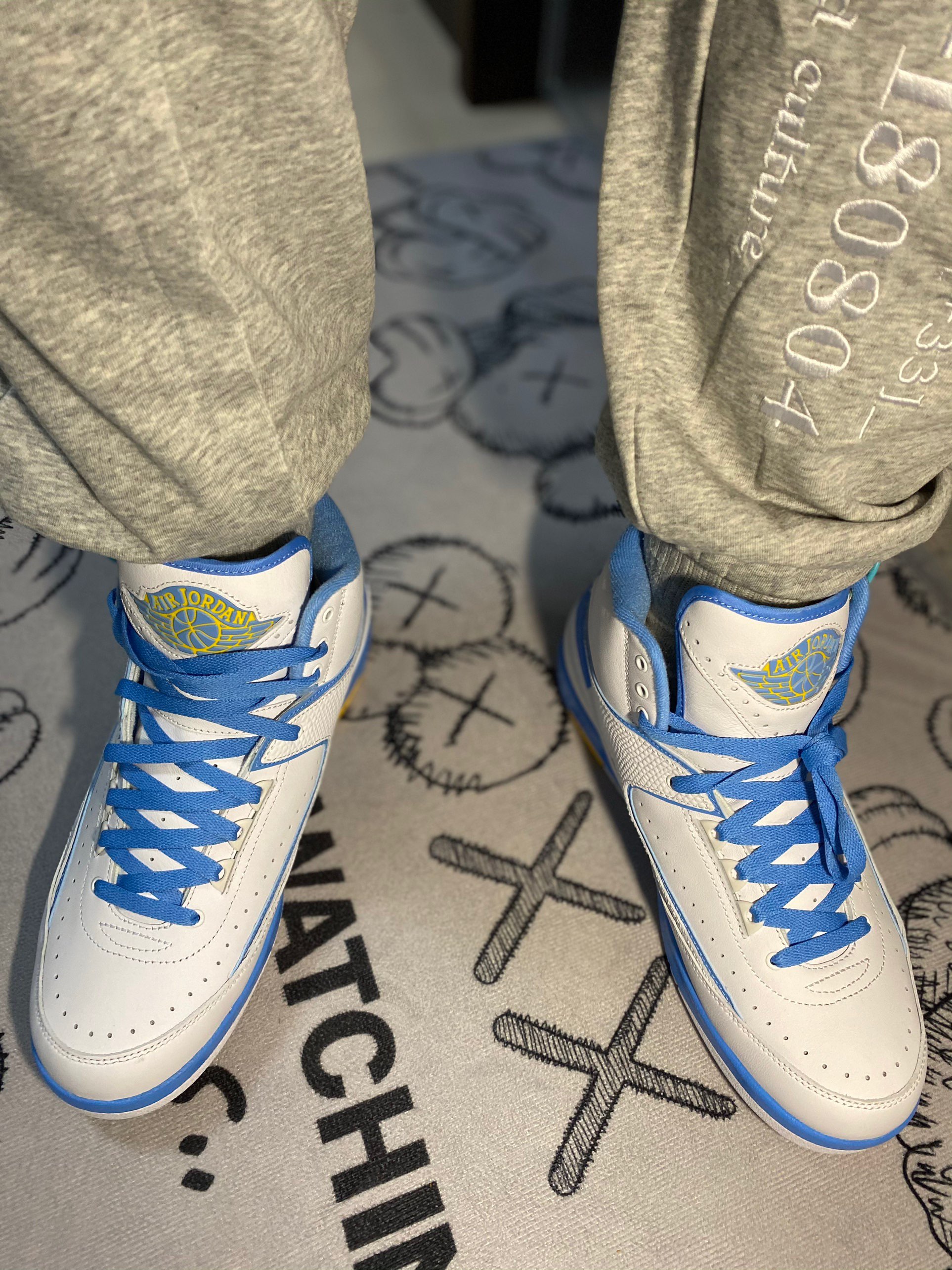 ➡️今日球鞋上脚—Air Jordan 2 Melo 北卡蓝 安东尼 ⭐️设计细节:Air Jordan 2的整体鞋型偏小众,基本上没啥存在感。鞋型方面不多说了,主要说细节,这双鞋是安东尼还在掘金时呼应掘金主客场颜色的设计,采用北卡蓝点缀金黄色,鞋舌上的大飞翼logo,以及鞋垫位置的Melo标示,都还是细节不错的。 ⭐️上脚体验:脚感一般,包裹性很不错,北卡蓝神仙配色,带来的这双AJ2颜值颇高。这...