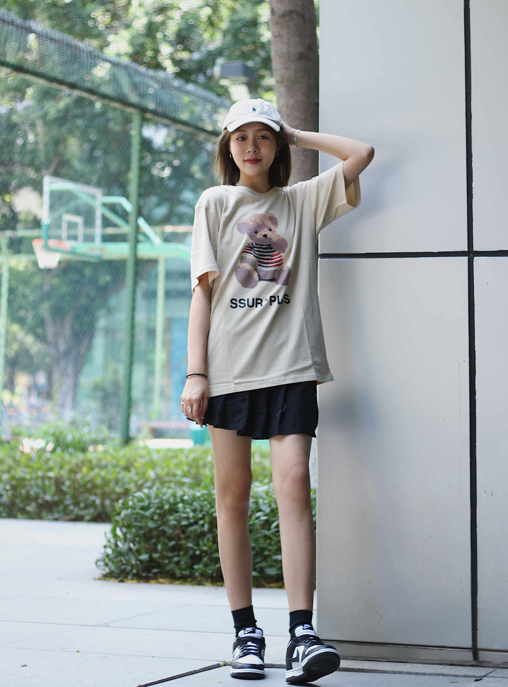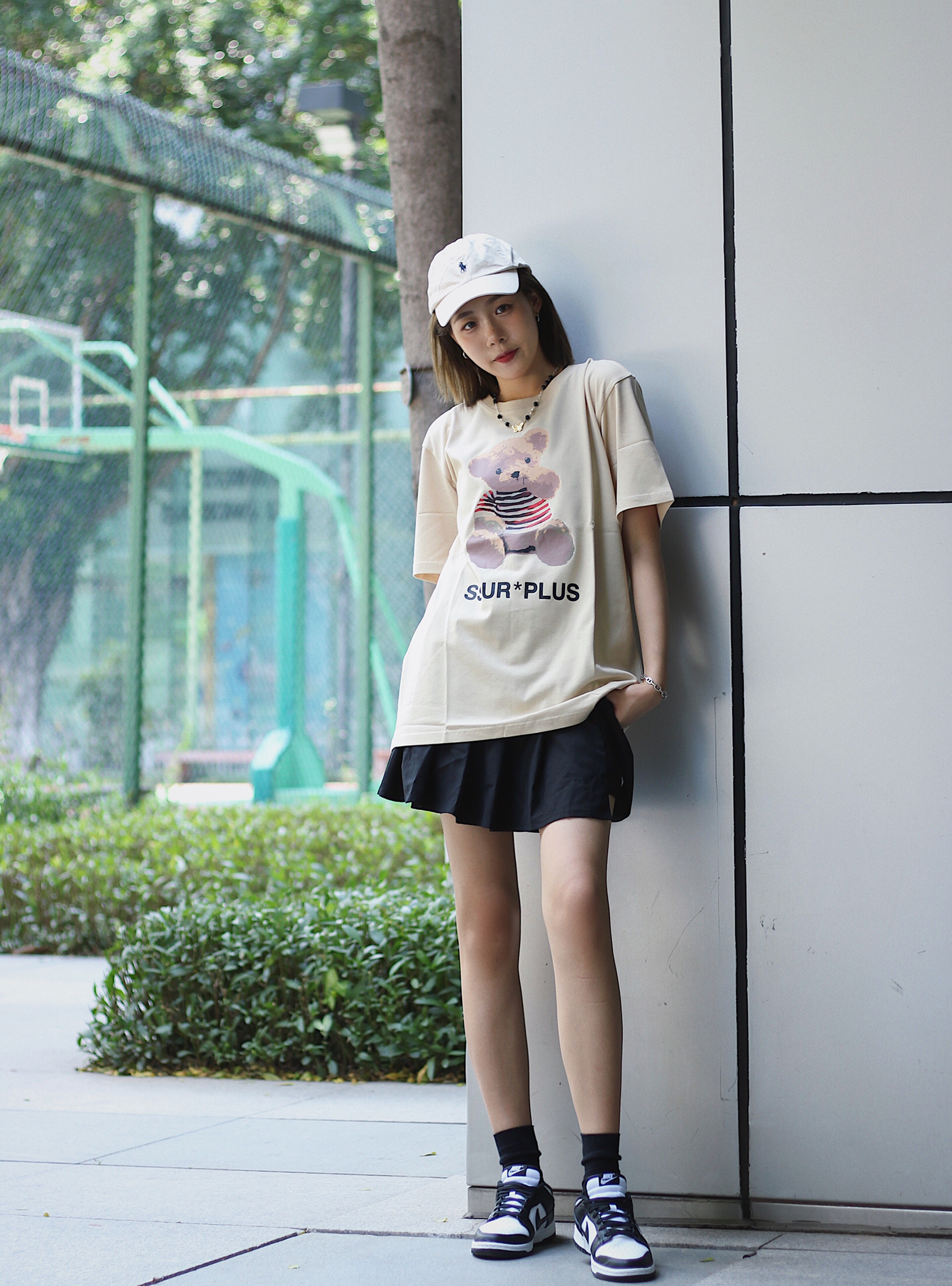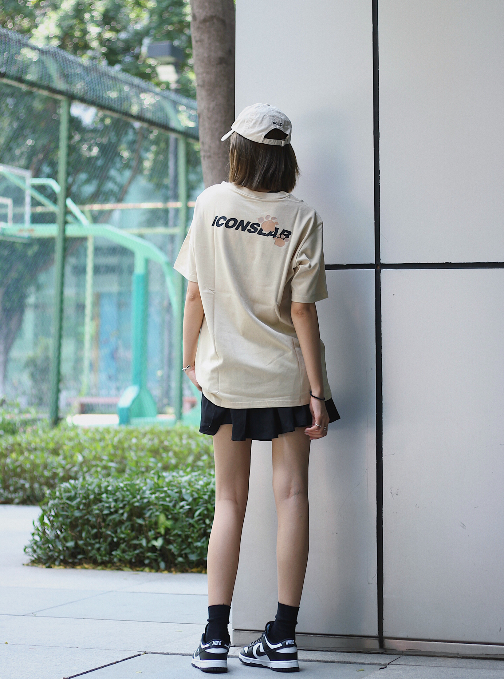 👔衣服 iconslab 大大只的小熊图案Tee 可可爱爱的肉色太棒了吧 百搭又可爱的风格 我觉得很百搭也很少女 搭配裙装恰到好处的阔爱 👗裙子 我有点忘记… 👟鞋子 dunk 呜呼 这一天天的 热得我裙子都穿上了!