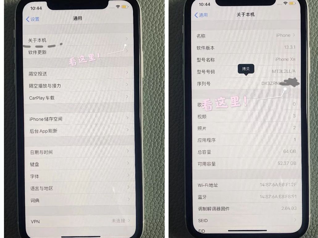 二手苹果手机怎么避坑??💚💚💚 二手iPhone怎么验机查询序列号📲电池查询📲硬件检测📲有无icloud激活锁📲DFU模式刷机📲卡贴机简述 一、查询序列号📱iPhone手机的序列号就相当我们的身份证号码,每部手机都有自己独一无二的序列号,我们可以通过查序列到这部的iPhone激活时间、剩余保修期限等相关信息,也能一定程序上辨别iPhone的真假,是否是山寨机、更换过序列号等 1、依次进入二手iPh...