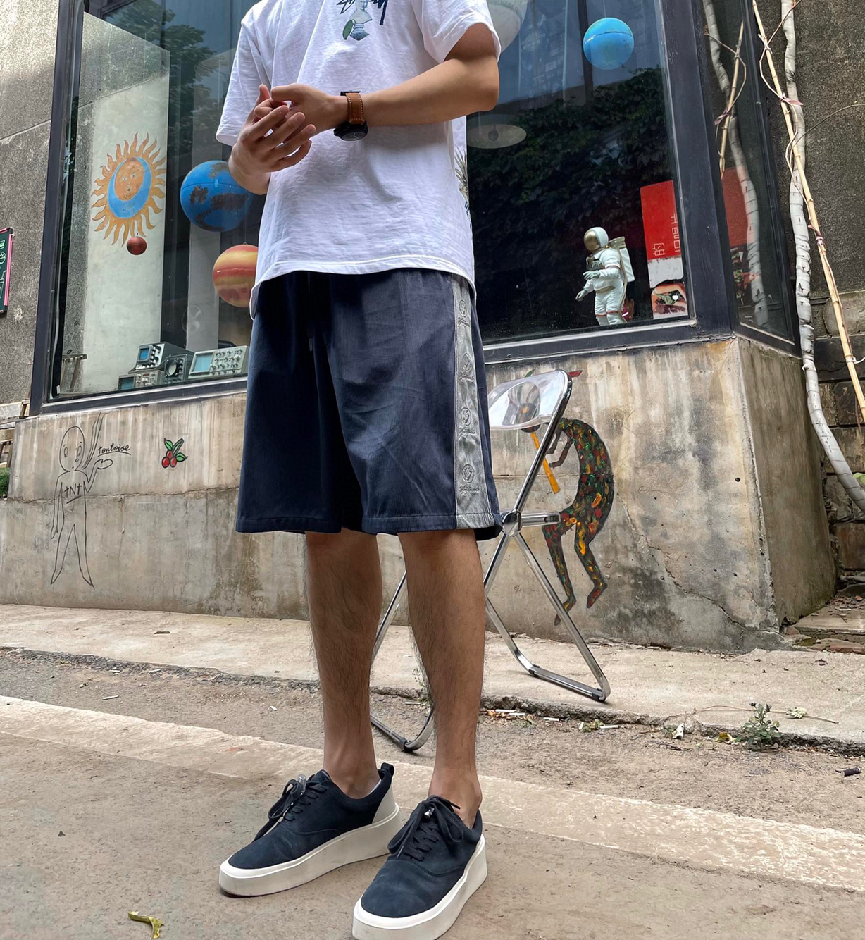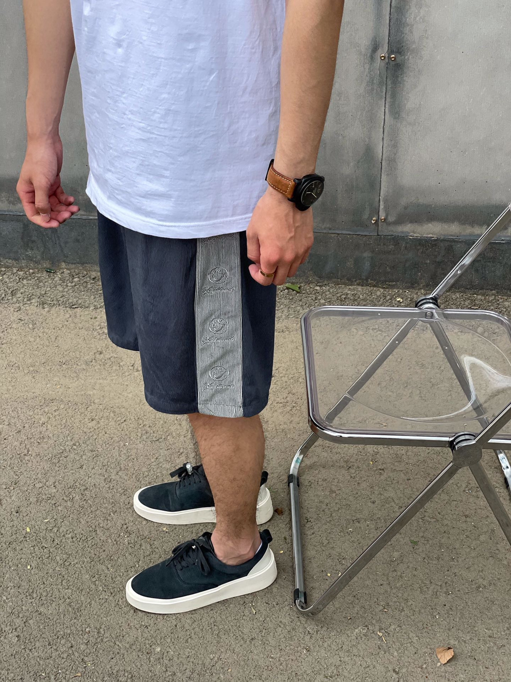 👖 欧美高街重工设计笑脸字母串标织带拼色灯芯绒短裤,高街美学与运动风碰撞诞生的绝佳风格,内敛的颜色设计,却又无时不在彰显着它的高贵精致。滚边工艺的拼色条纹,笑脸和字母的刺绣相间顺延而下,完美的刺绣工艺清晰展现贯穿整个织带。手感柔软上身体感非常舒适。纵向条纹的设计,干净利落,不同角度呈现金属光泽效果。 👟fog比较冷门的款 , 比较舒适,比较热