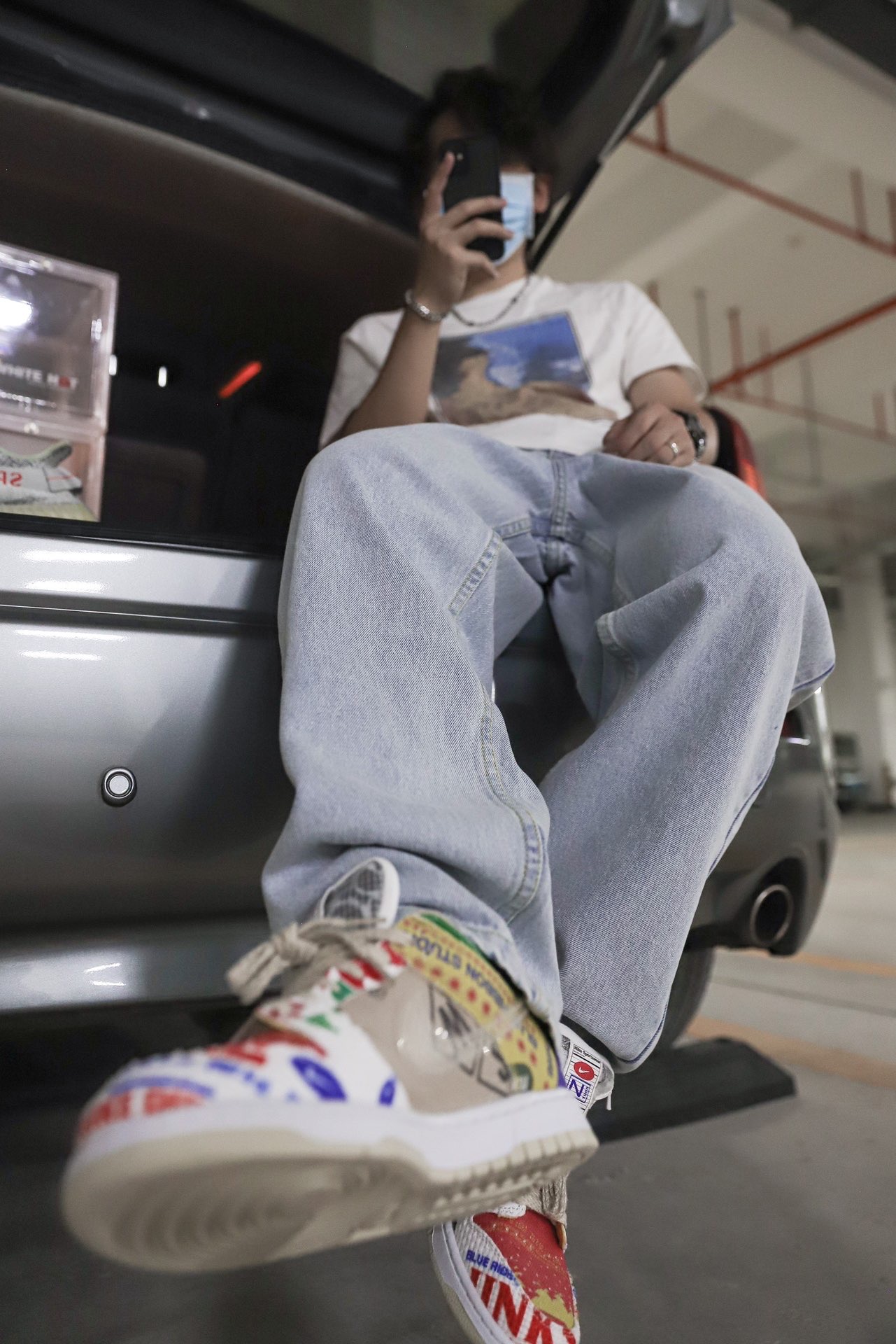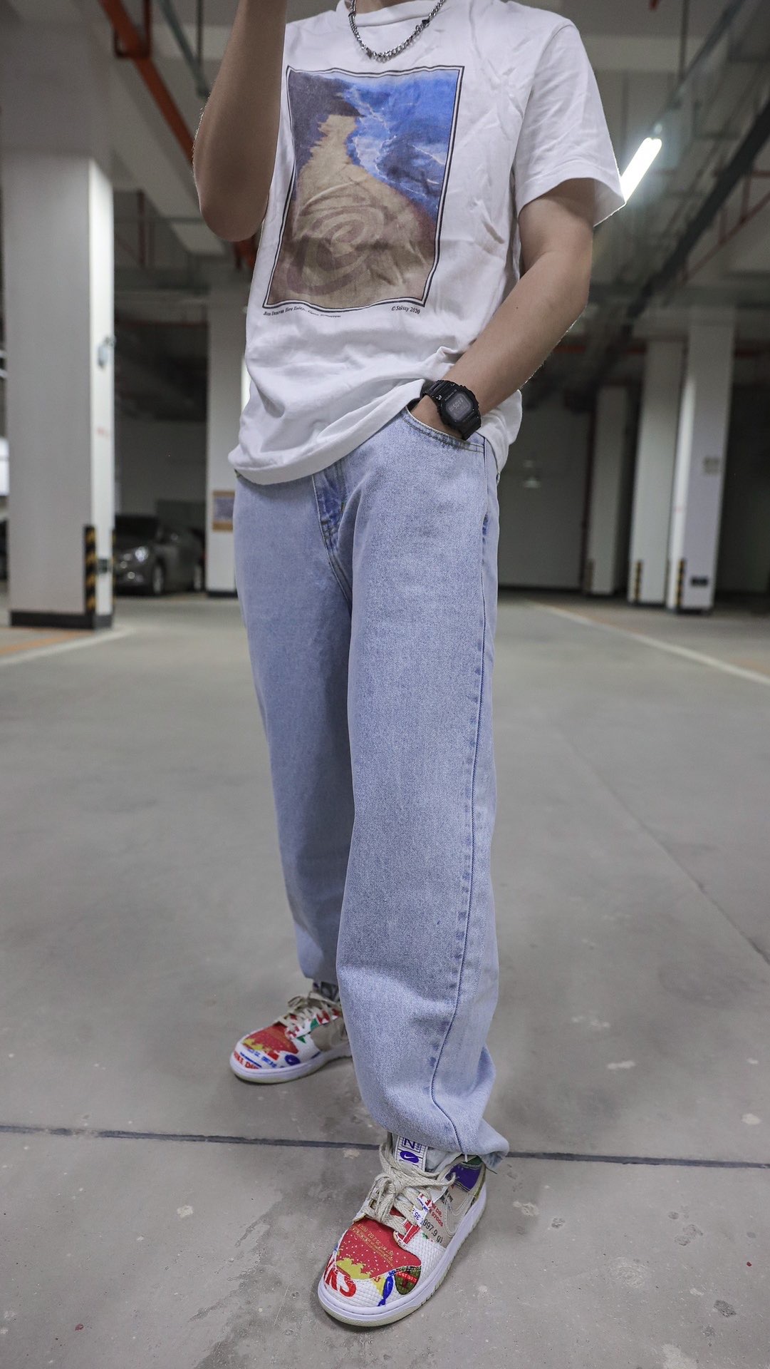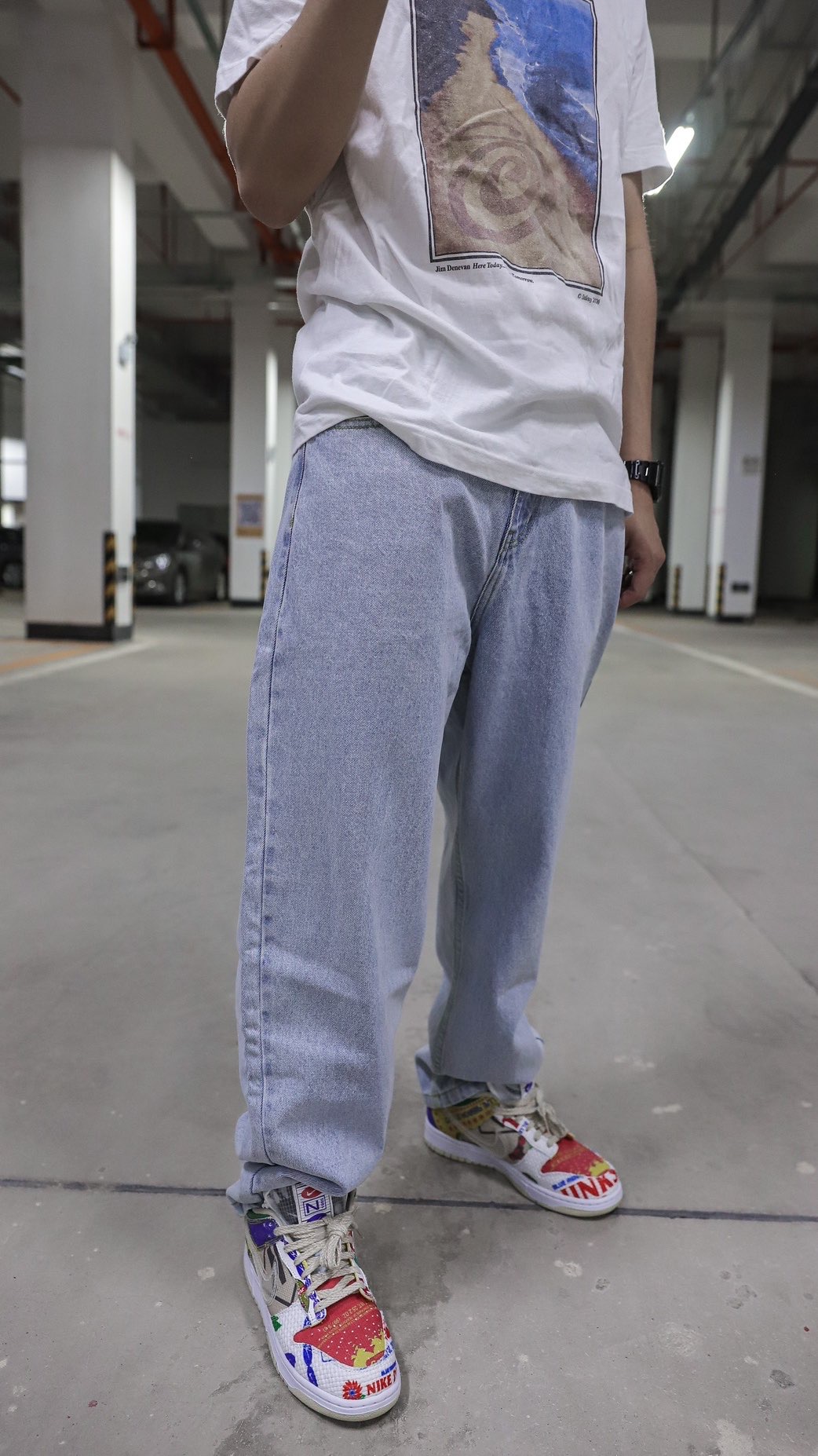 昨天刚收到的lilbetter牛仔裤👖,今天就穿起来了,毕竟非常的好看🥰🥰,复古风满满,却是我比较少牛仔裤👖 那你们来帮我看看,这条裤子怎么样🤫🤫,超级宽松,超级柔软,就很有复古的感觉😍😍,根据王嘉尔搭配风格,白半袖,牛仔裤,白饭鱼,但由于我没有白饭鱼,所以就搭配超级市场来看看了🚗🚗🚗 哈哈哈哈哈,这裤子是真的毒🤤🤤,搭配350也是美滋滋🥰🥰