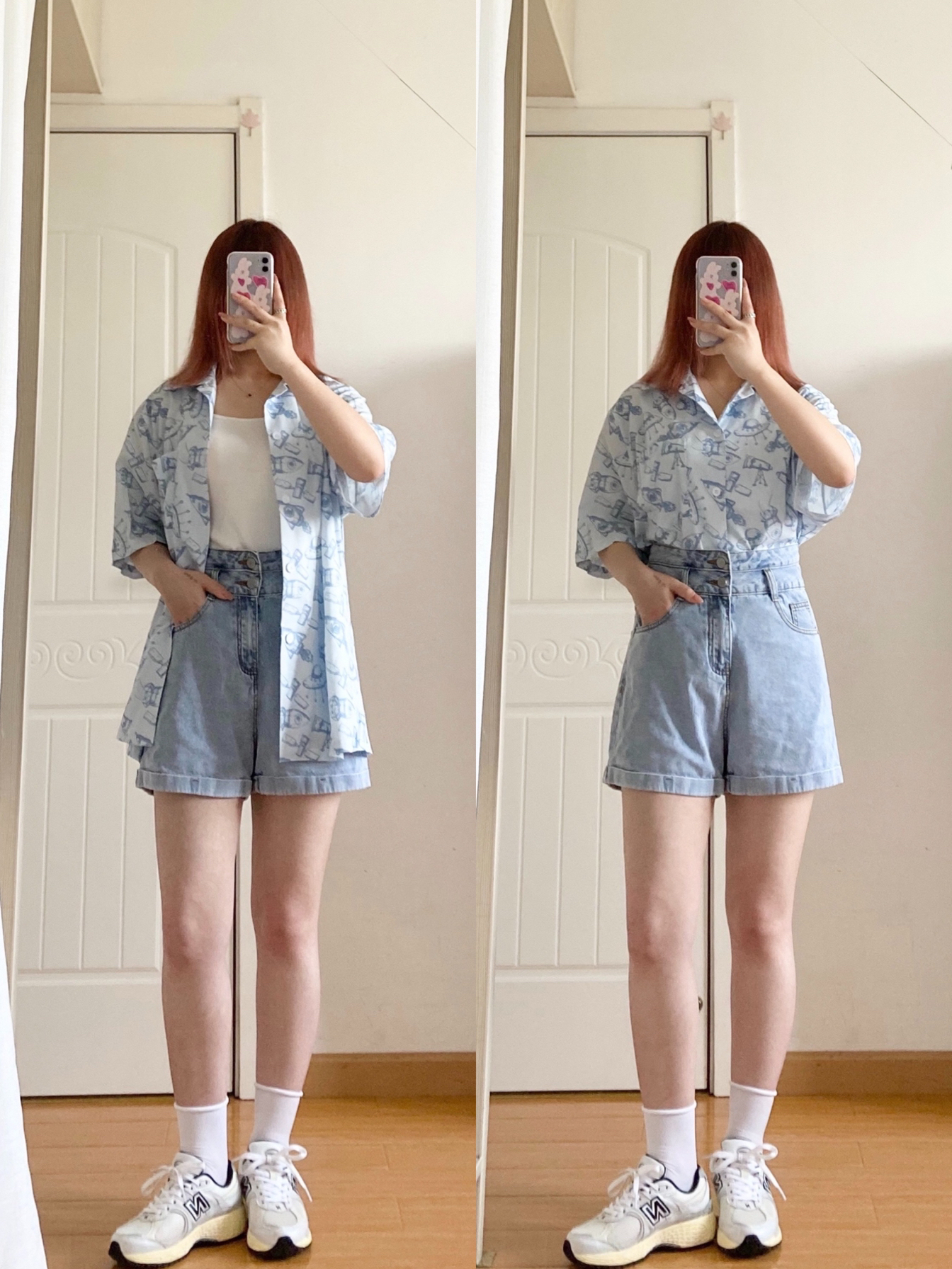 Look1️⃣ 👔蓝色涂鸦衬衫:番茄森林 料子很舒服 有垂感很顺滑 不容易皱 穿着很凉快! 👖双扣牛仔短裤:兰贝儿衣橱 A字阔腿版型超级显瘦!高腰双扣巨显腿长! 👟运动鞋:新百伦nb2002r联名米白 . Look2️⃣ 👚白色短袖t恤:—— 👖灰色开叉直筒裤:YOUZIQI柚子琪 料子舒服版型好 灰色很韩系 有垂感 开叉很显腿长! 👟帆布鞋:vans黑白棋盘格一脚蹬