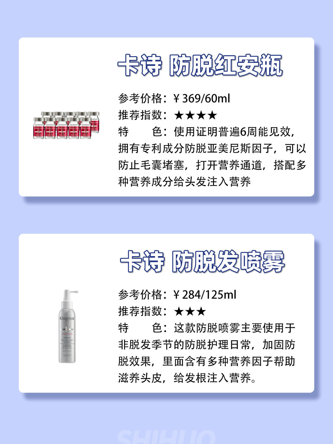 本篇笔记关联了卡诗 防脱红安瓶头皮健发精华液 强根 防脱育发、卡诗 防脱发固发免洗喷雾 强韧秀发头皮养护 125ml、馥绿德雅 80固发育发精华液 防脱发 5ml*12等商品,为用户提供真实的使用体验和购买参考。