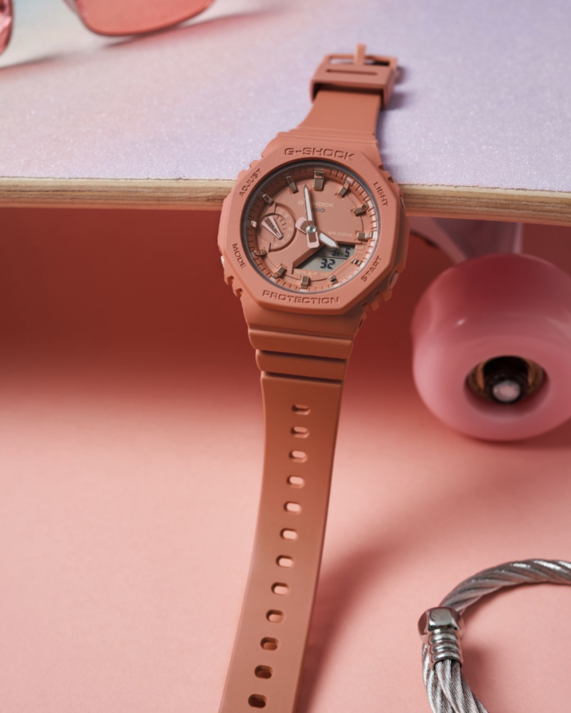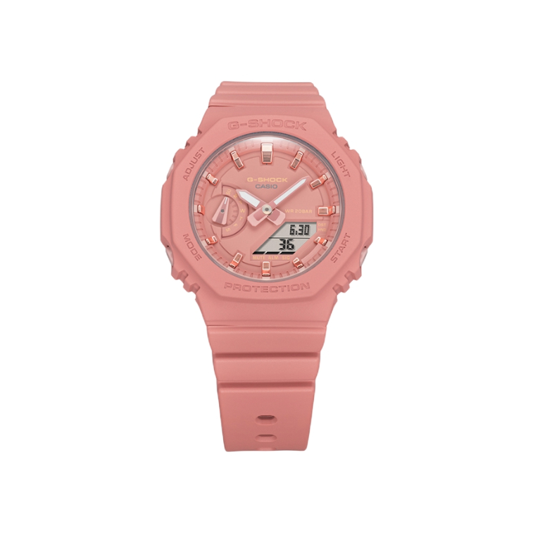 本篇笔记关联了Casio/卡西欧 G-SHOCK 农家橡树八角表盘双显运动防水防震树脂表带石英女士手表 粉色 GMA-S2100-4A2PR等商品,为用户提供真实的使用体验和购买参考。