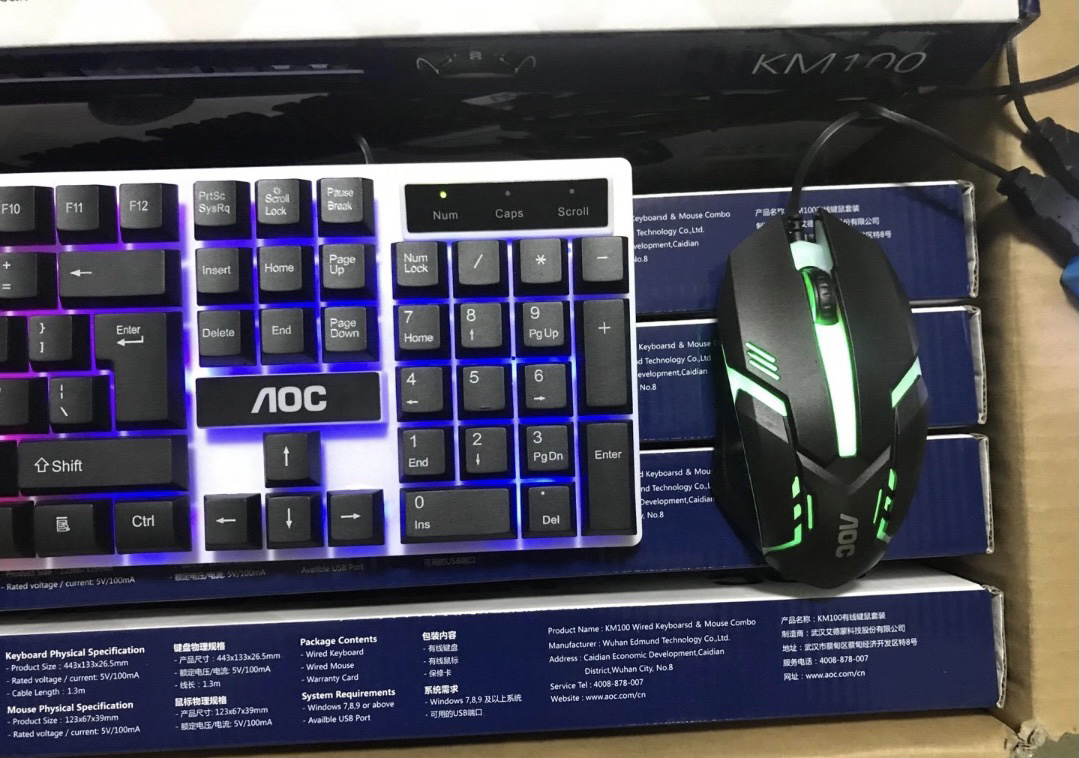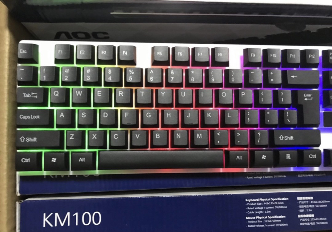 本篇笔记关联了AOC KM100 有线键鼠套装 有线背光 真机械手感 黑色等商品,为用户提供真实的使用体验和购买参考。