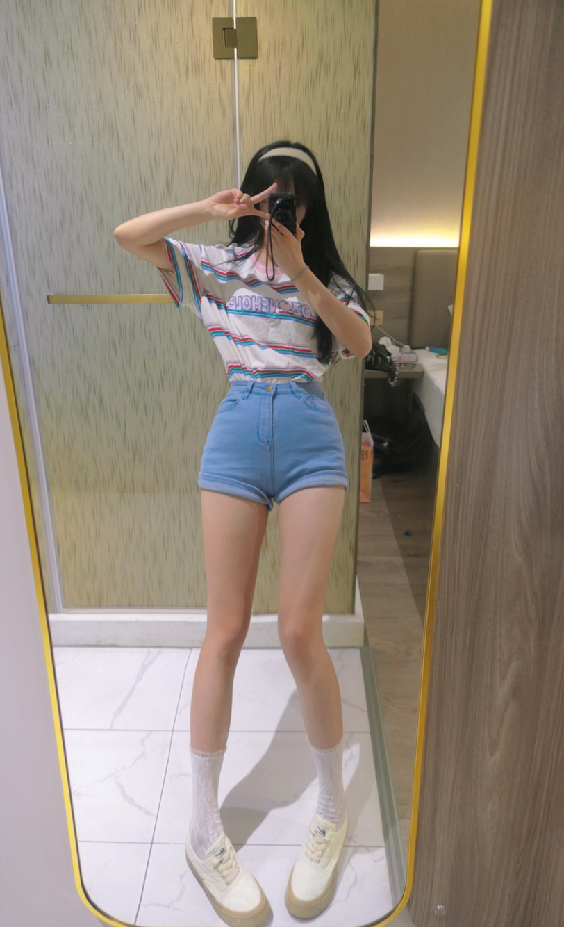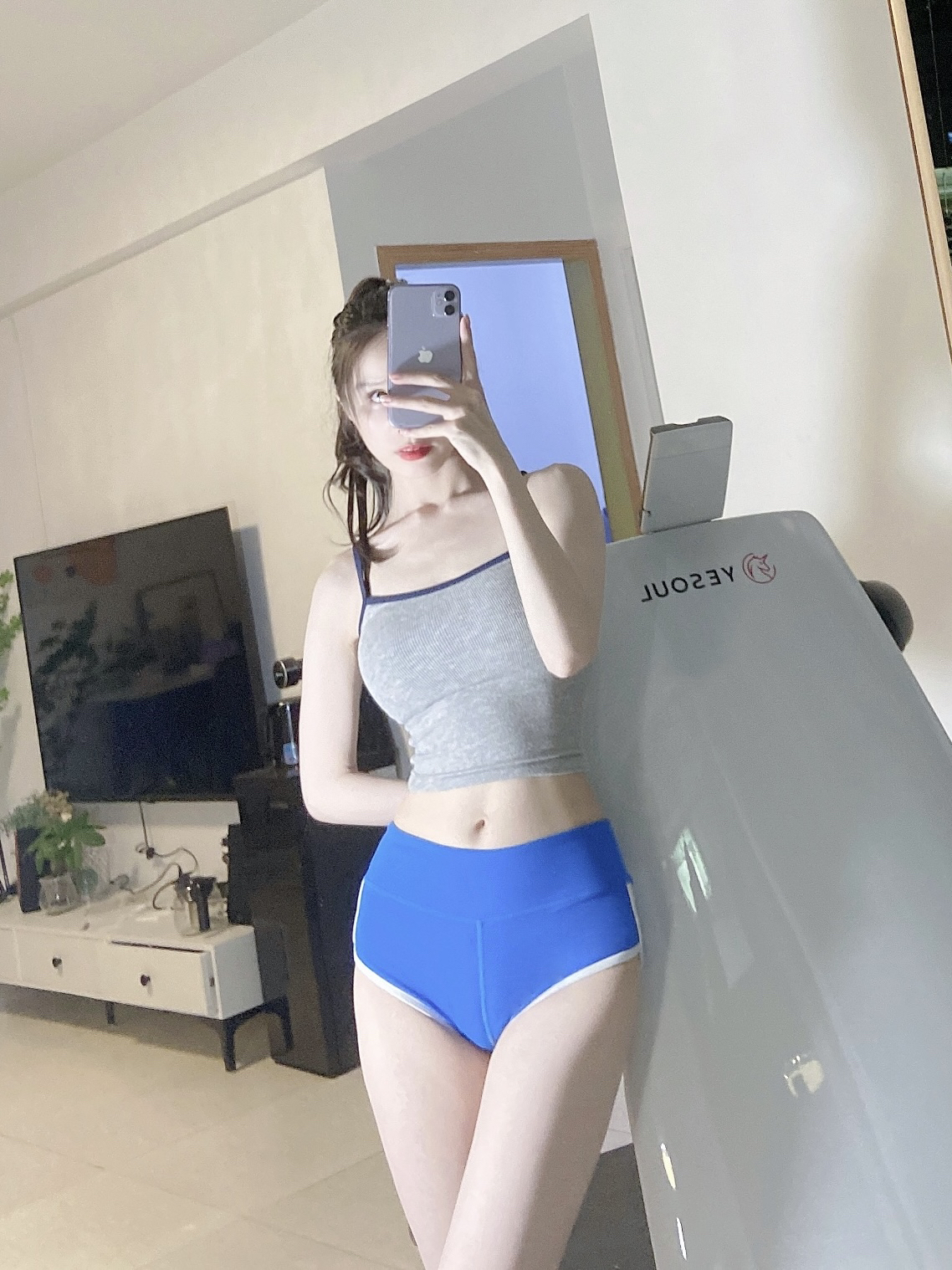 糖果色蓝太好看啦,运动短裤最喜欢灰蓝啦 呼呼 有点言语匮乏怎么说 这件上衣路边买的也超舒服嘿嘿
