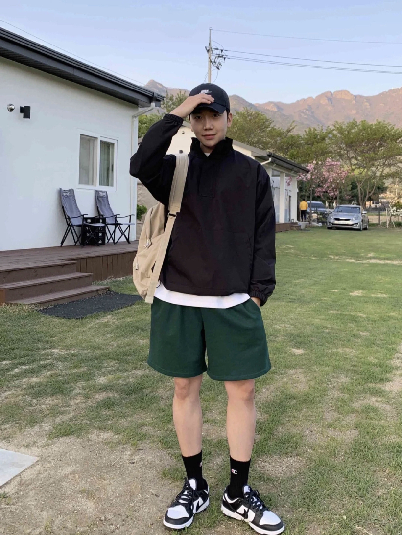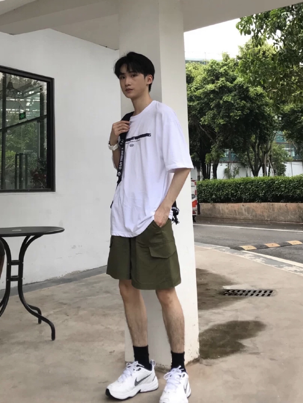 夏季氛围男友风穿搭~ 会穿搭的男生太加分啦🌈🌈 look1⃣️ 博主:@CTBoy 👦:|175cm 115| 👕&🩳:NGOARMY 👟:NB (你的日系街头男友~这种灰蓝绿的T恤不同以往的黑白T,但显得更特别了,搭配卡其色的工装短裤,色调宝藏) look2⃣️ 👕T恤:OVDY 2021SS 黑色假期主题印花短袖男T恤 9693 👕内搭:纯色圆领长袖卫衣 👖裤子:深咖色短裤 (你的高街滑...