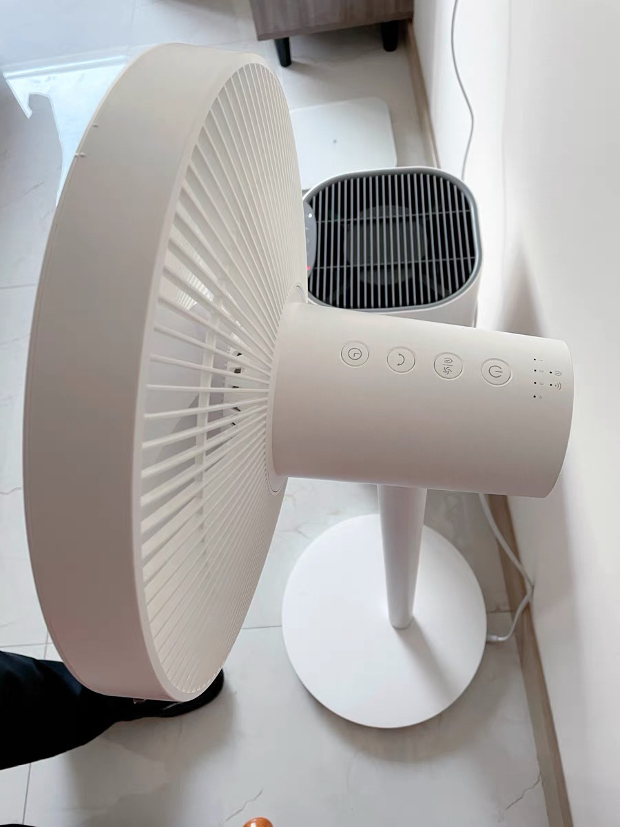 😀 外观材质:白色简洁纯白色看着很舒服,耗电量:空调开着太凉了,风扇开着刚好,很舒服运转声音:只有最大档声音明显,123档声音特别小档位调节:很便捷,可以连手机,家里买了小米空气净化器,都可以连,很方便! 😀吹风感受:很舒服的风,还有自然风可以选,前一天下的单今天就到了。电扇发货速度快,次日即达,噪音低,最大风力噪音也是可接受范围内,特意为电扇搭配小米音箱,使用方便,电扇重量很轻,挪动方便,考虑...
