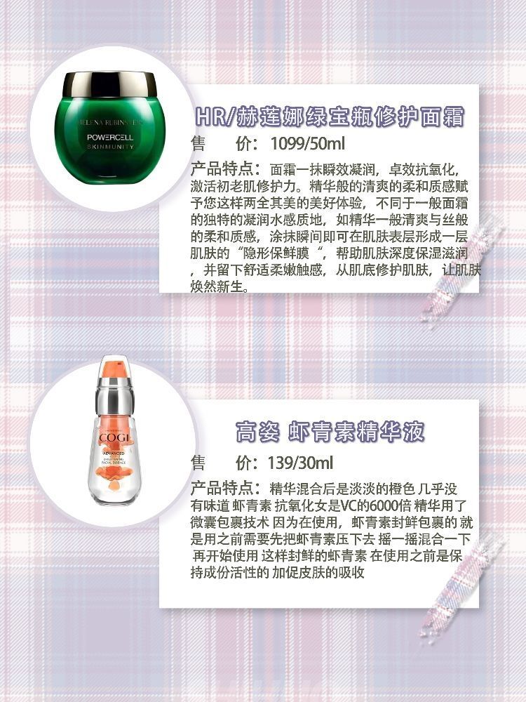本篇笔记关联了Olay/玉兰油 大红瓶新生塑颜紧肤金纯明星面霜 抗老紧致淡纹 日霜50g、HR/赫莲娜 绿宝瓶修护轻乳霜面霜 提亮去角质提拉紧致 50ml、高姿 虾青素精华 提亮美白 改善黄气等商品,为用户提供真实的使用体验和购买参考。