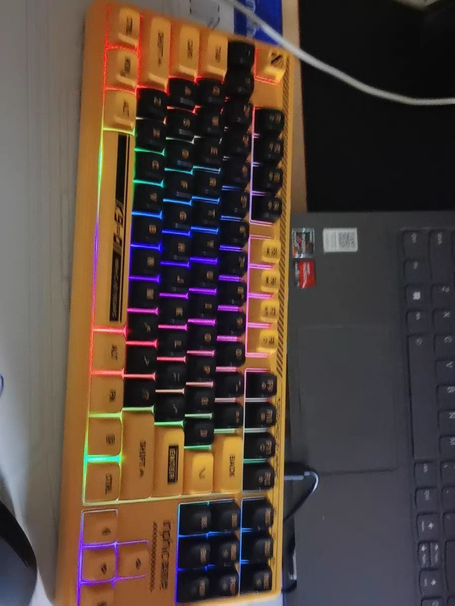 ⌨️金属面板,机械轴体,键盘右上角的多功能按键,可方便切换灯效及多媒体模式,而且还有20种灯效选择,晚上的时候,灯光非常漂亮。 ⌨️它有雷柏自主的机械轴,手感基本能满足,键盘上盖还采用了磨砂金属材质,看着就不廉价,还有着混彩背光系统,多种灯光模式,但键盘的颜色只有一种,灯光的选择倒是挺多的。 ⌨️主打朋克风格的外观,有着磁吸式手托,键帽四周还加入了高亮设计,22种RGB灯效,在外观方面完全不输于一...