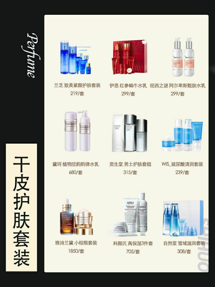 1⃣纽西之谜 阿尔卑斯靓肤补水保湿水乳套装 官方旗舰店价格:299/套 推荐指数:⭐️⭐️⭐️ 改善暗黄粗糙,肌肤重获透明感,焕现均匀光泽肌,脸蛋澎澎喝饱水,令肌肤更柔软 2⃣科颜氏 高保湿系列3件套 官方旗舰店售价:705/套 推荐指数:⭐⭐⭐ 涂抹后的皮肤润润嫩嫩的,就像喝饱了水一样,保湿但不油腻。 3⃣黛珂 植物欣韵韵律水乳护肤套组(适合干皮)滋润型 官方旗舰店价格:680/套 推荐...