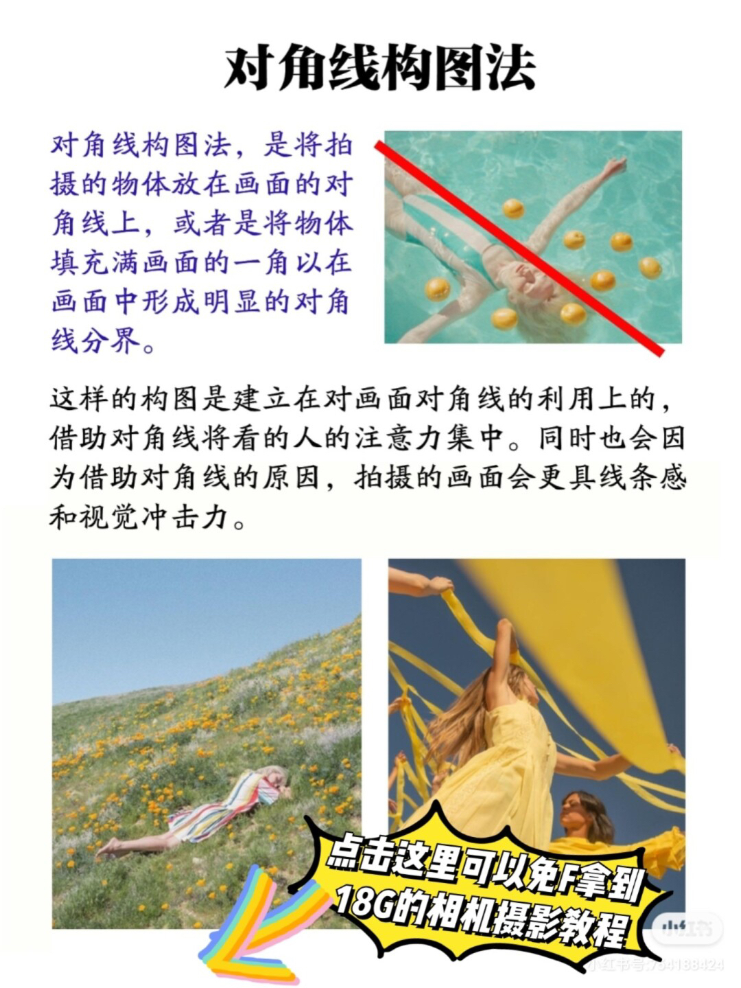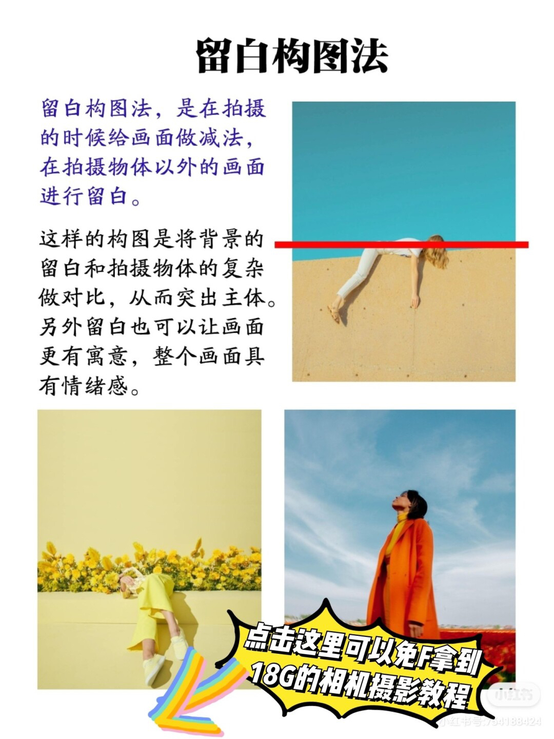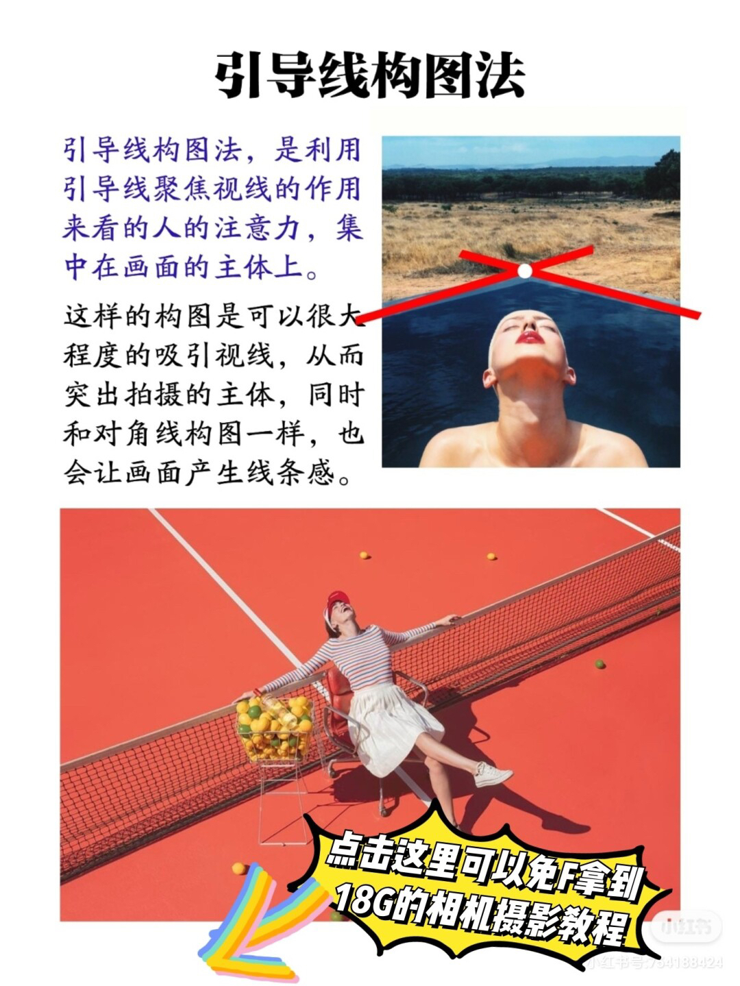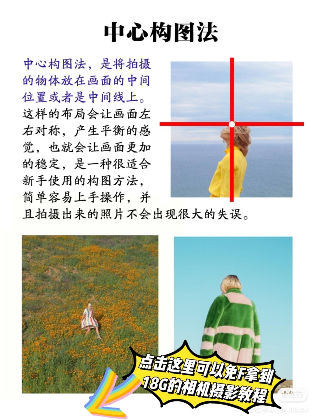 哈喽 今天WuTay来和大家分析的是🖼摄影构图方法 主要和大家分享了七种构图方法 1⃣中心构图法 2⃣对角线构图法 3⃣引导线构图法 4⃣对称构图法 5⃣留白构图法 6⃣前景构图法 .