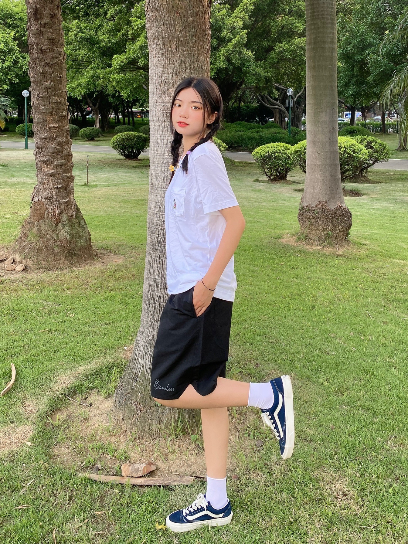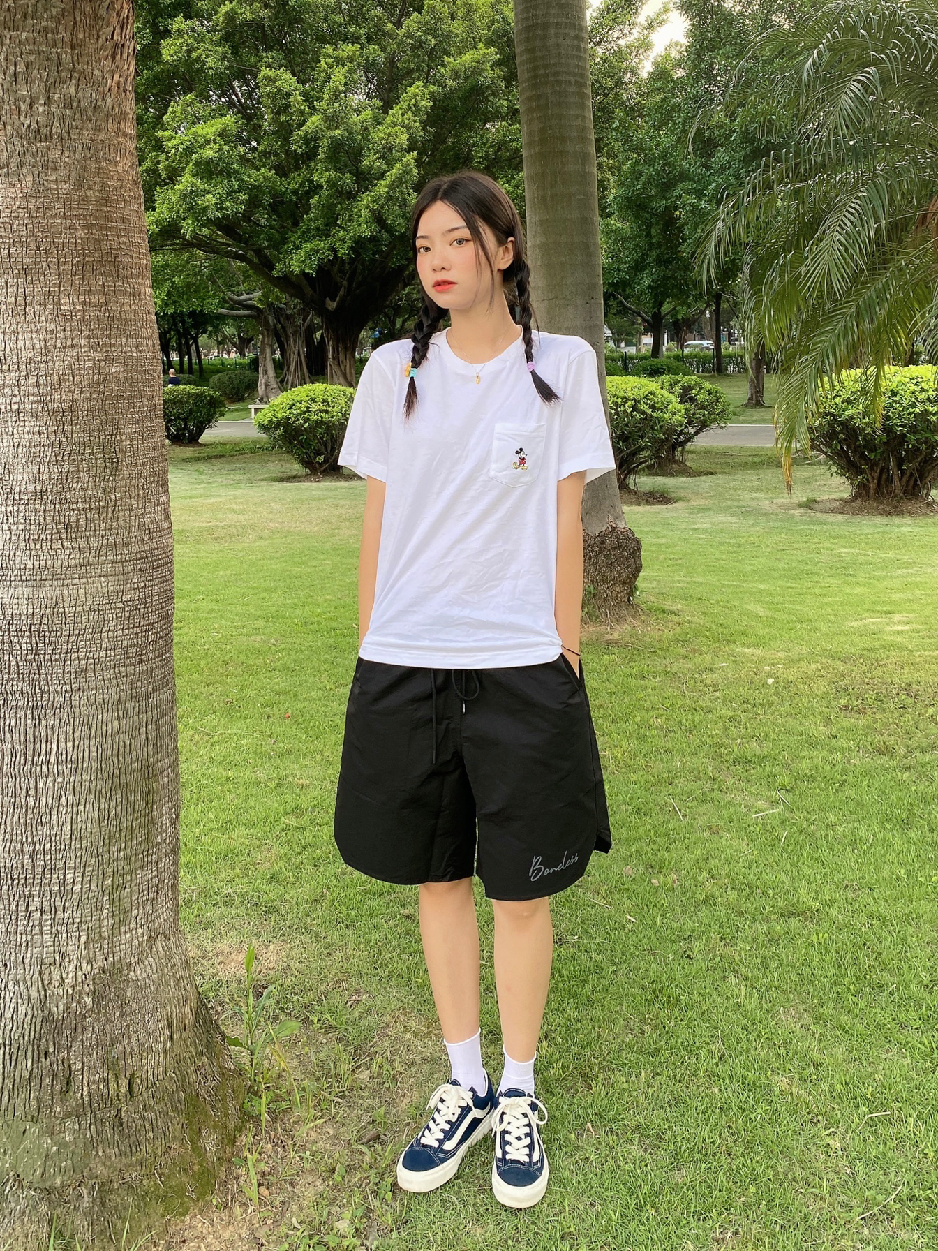 黑白配穿搭永远都不会吃错 百搭又好看 简单又舒服 给人一种很干净的感觉 夏天当然就是短裤呀 人手一条安排上 再随便搭个t就会很好看 价格也很亲民 很适合学生党或者打工人👀 穿搭信息: 🩳:Boneless 👟:Vans