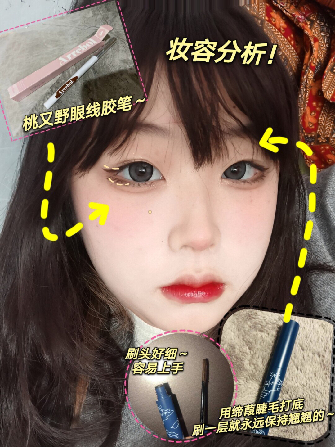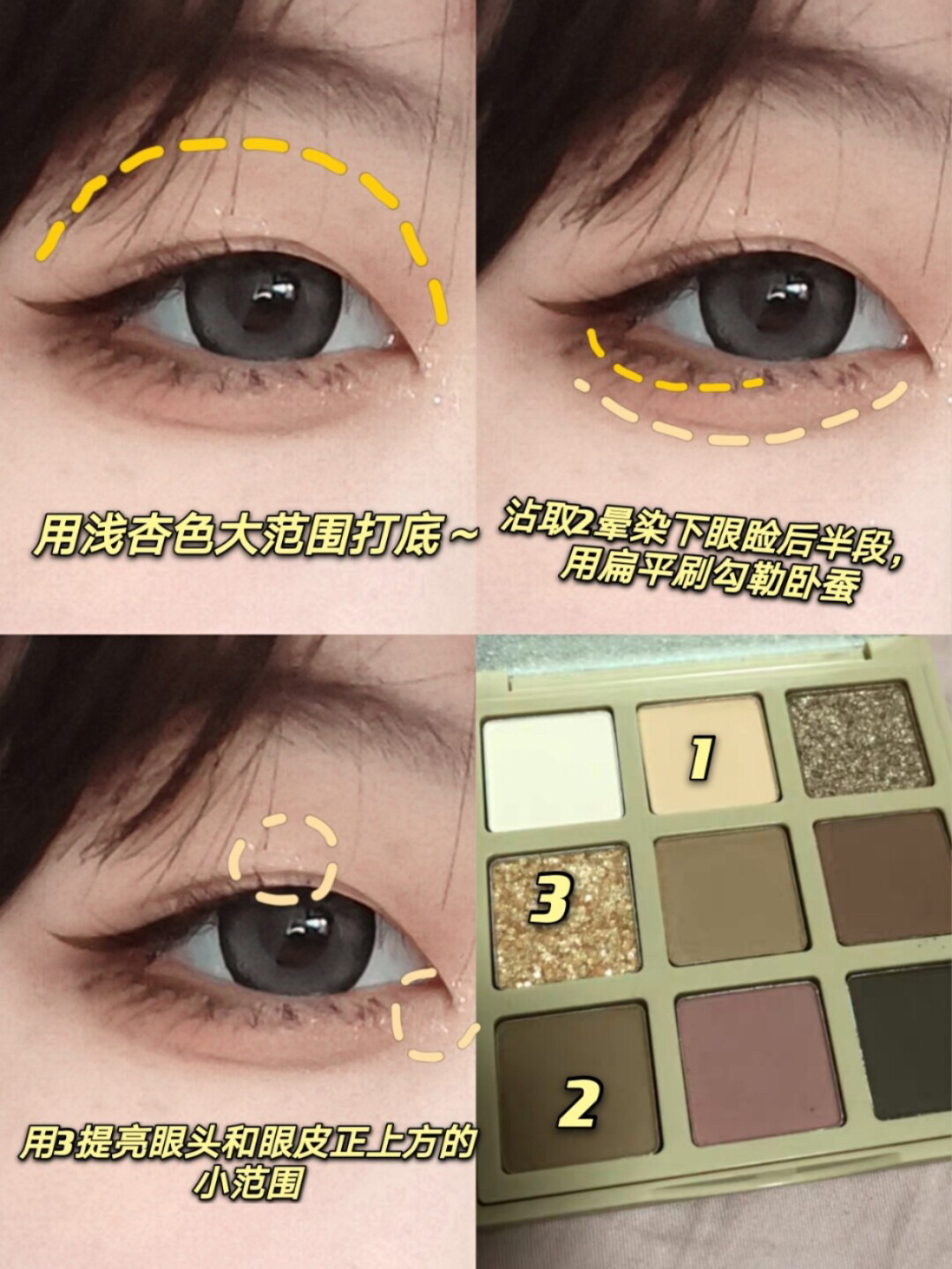 我又来分享眼妆啦!这次的妆容十分日常,双倍放大眼睛的秘诀快来学! 🍑今天我选用的是戈戈舞家油画杏桃605盘,整个盘非常日常!新手宝宝可以入~因为里面是色块已经搭配好了,所以很适合新手小白的~教程详细都在图片上噢 🍑画大眼妆的关键在于下至!我今天用的是桃又野眼线胶笔,可以带妆一天也不晕染,下眼睑是最容易晕染的!但用这个完全不会~新手也不会手抖噢! 🍑睫毛使用的是缔葭睫毛打底~我用的是棕色的那一款~非...