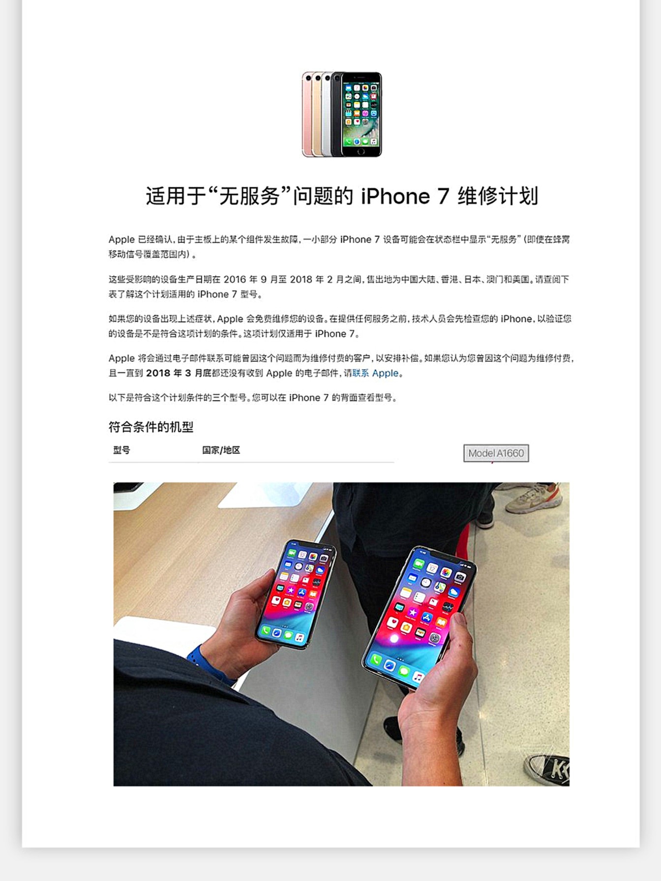👹另外iPhone7系列当时还遇到了全新的问题,那就是突然出现“无服务”的问题。