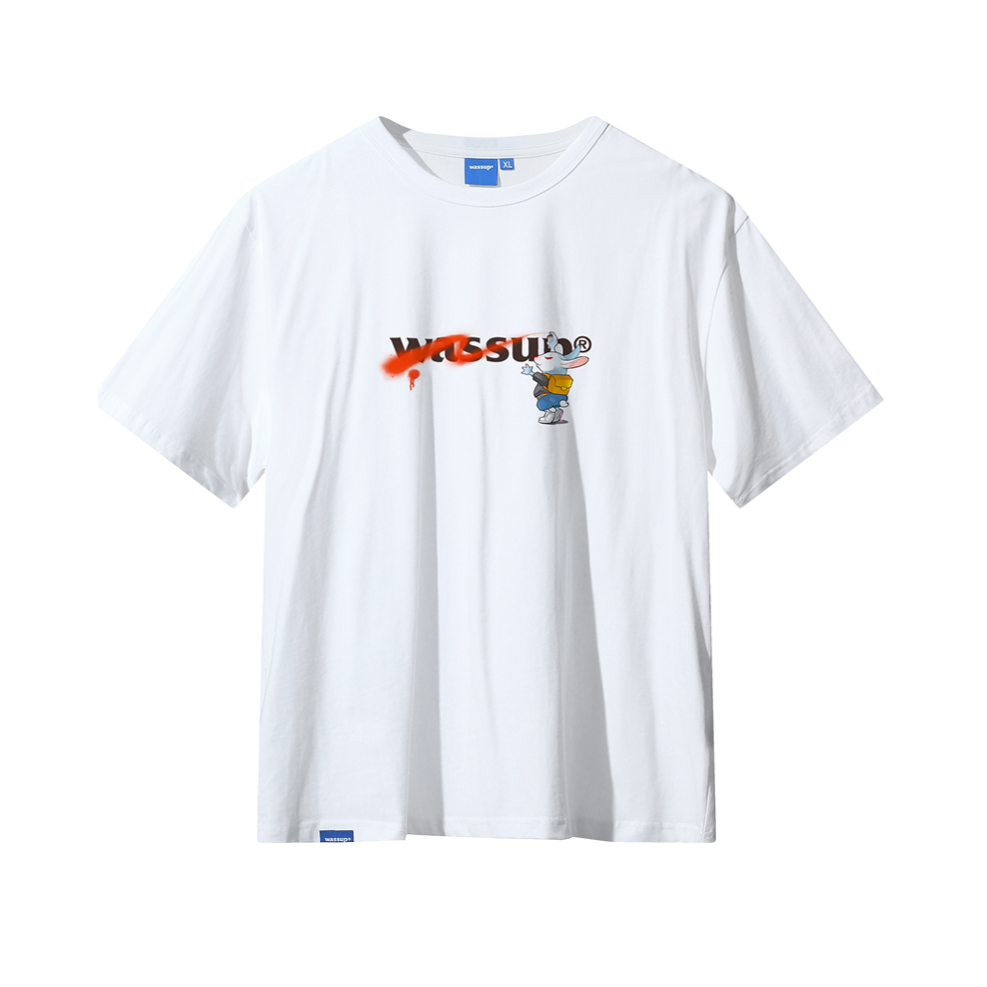 WASSUP 卡通兔子涂鸦印花短袖T恤,百搭 宽松 可以遮肉肉, 嘿嘿🤤面料材质:质量说真的真的很好,非常值这个价格, 不错的这个衣服、比经典款好看!! 图源网络侵删