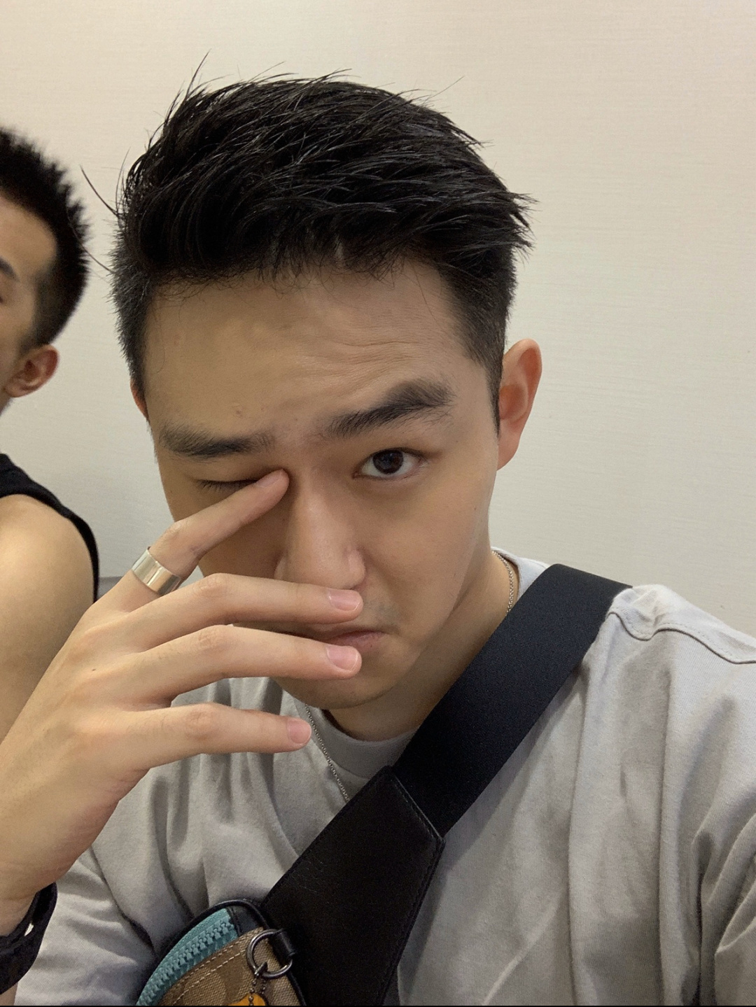 这款发型是我现在正在留的发型 因为烫了一下发根 所以特别好打理 两边头发剃短也显得人很精神 基本发根都是往上的 也会有一点增高的效果哦