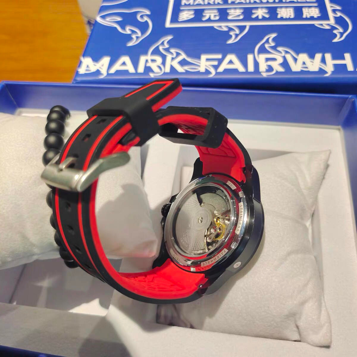 本篇笔记关联了【任嘉伦推荐】Mark Fairwhale/马克华菲 开拓者 橡胶带款赛车精钢表壳夜光防水双面镂空透视陀飞轮自动机械男士手表 银壳红面胶带 等商品,为用户提供真实的使用体验和购买参考。