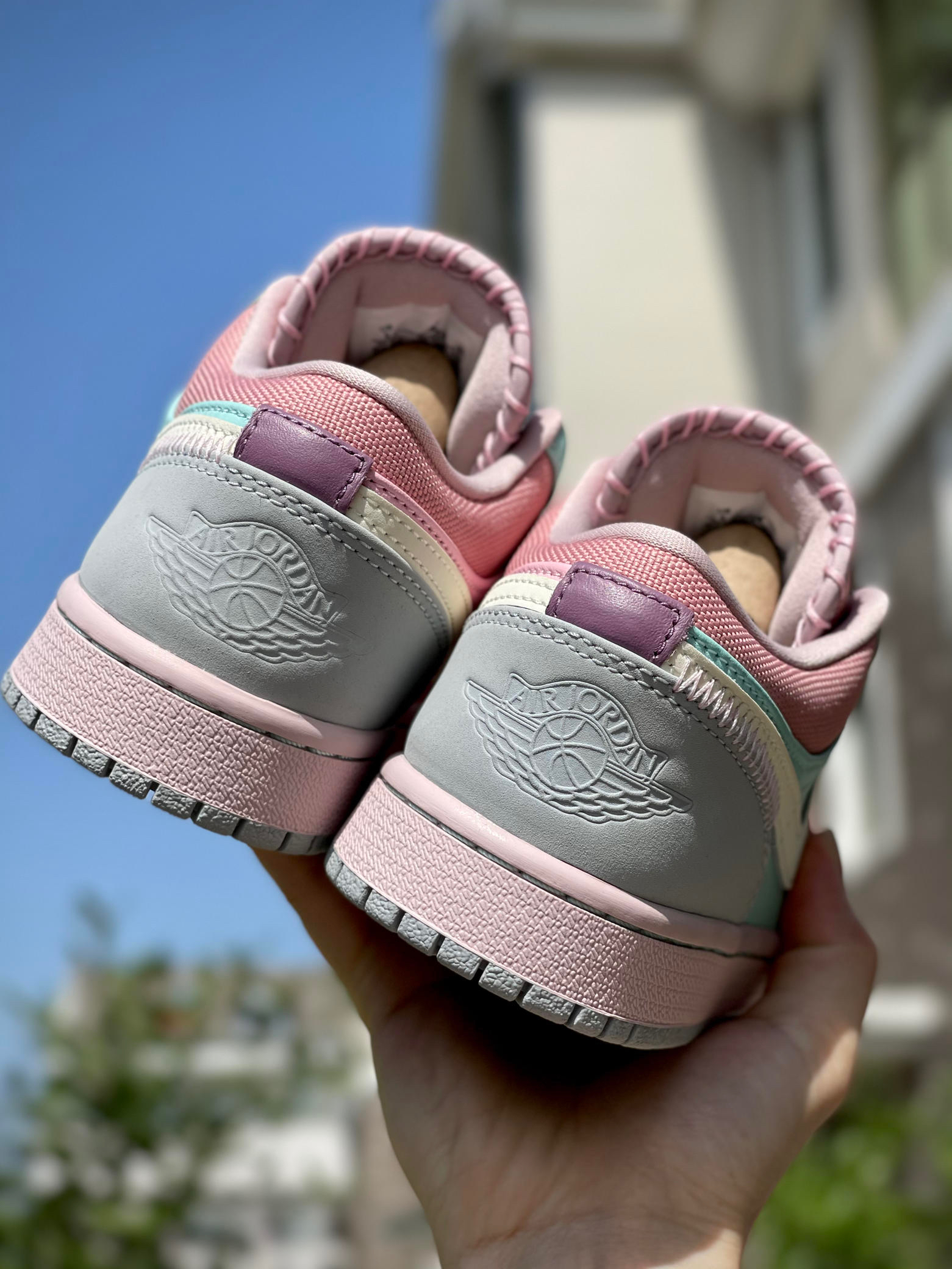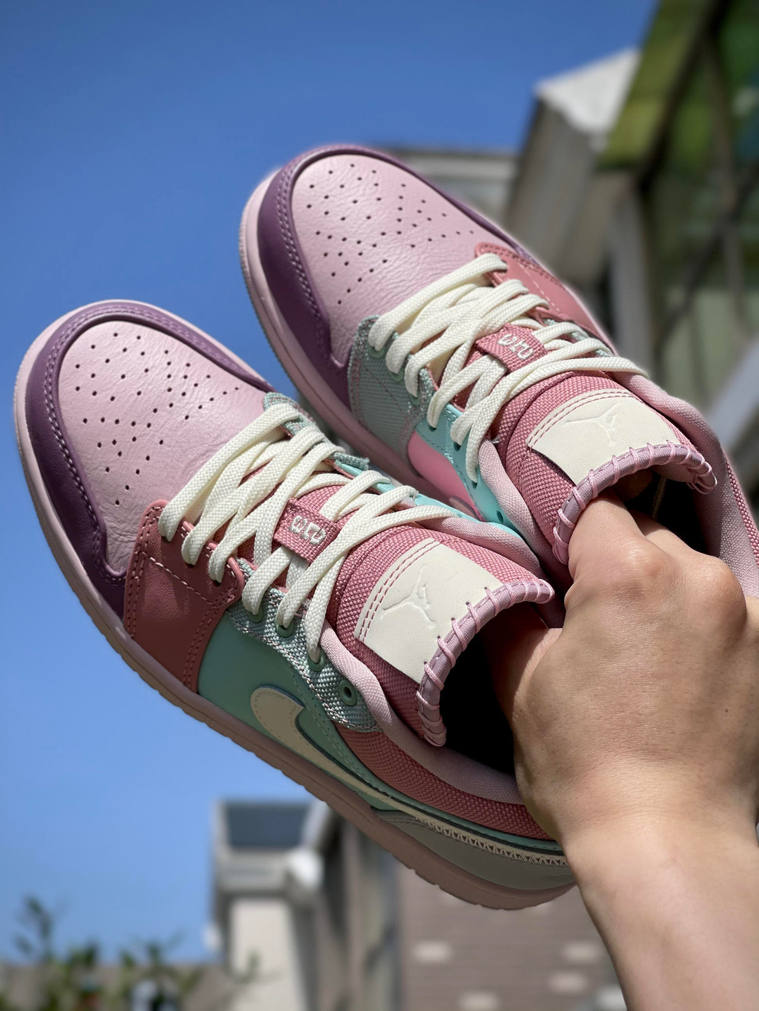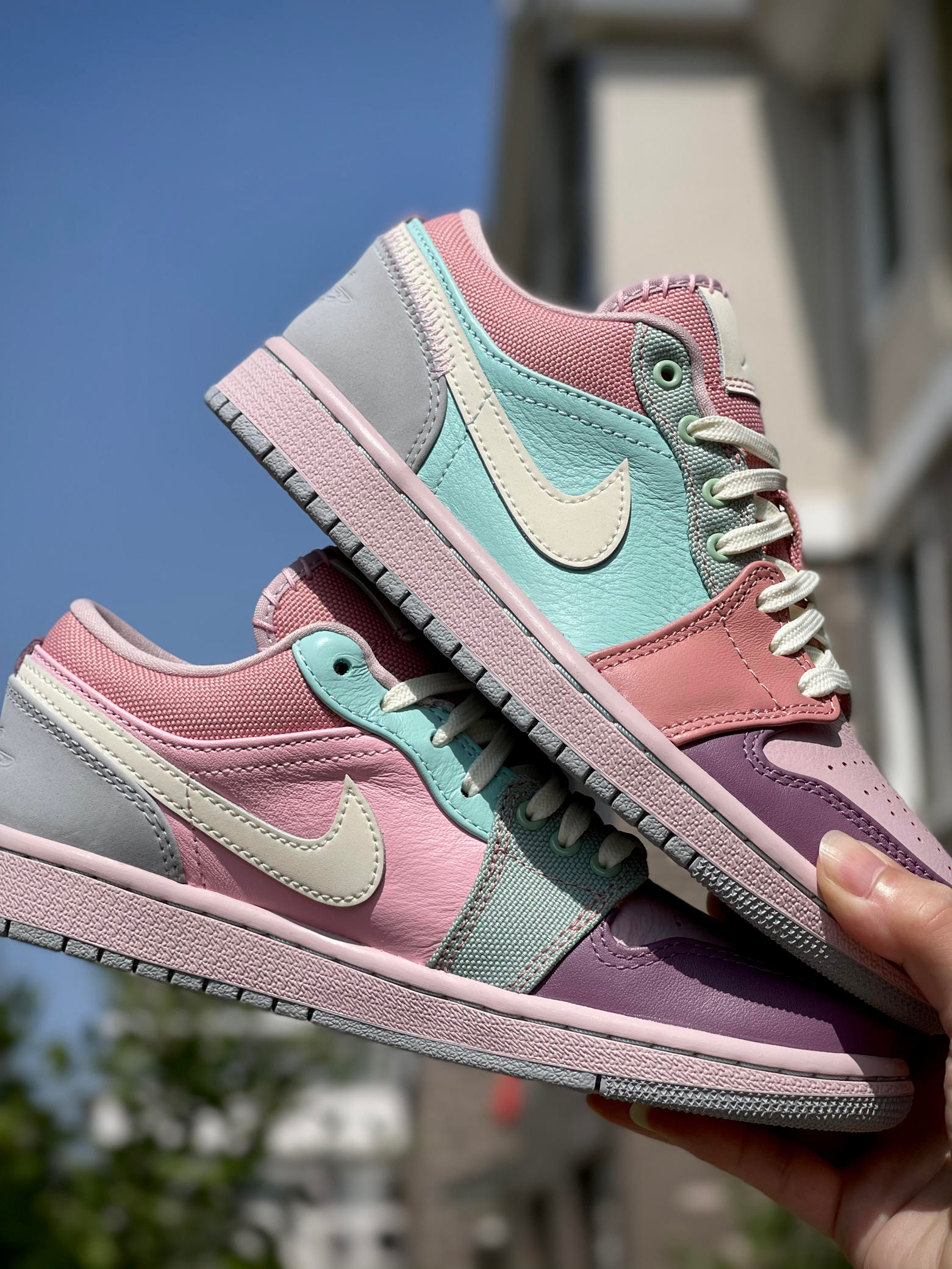 放在两年前 你们敢相信这么优秀的一双AJ1 low 折扣价就能入手? 👟鞋款名称 Air Jordan 1 Low SE "Champagne" 粉紫绿 马卡龙 又是一双拼色系列的AJ1 低帮 颜色方面偏少女一点,但是有男码 猛男们也可以驾驭😄 优点:配色和材质多样 细节丰富 做工和用料相对优质(made in china 你们懂得) 采用了各种少女感十足的马卡龙色搭配不同材...