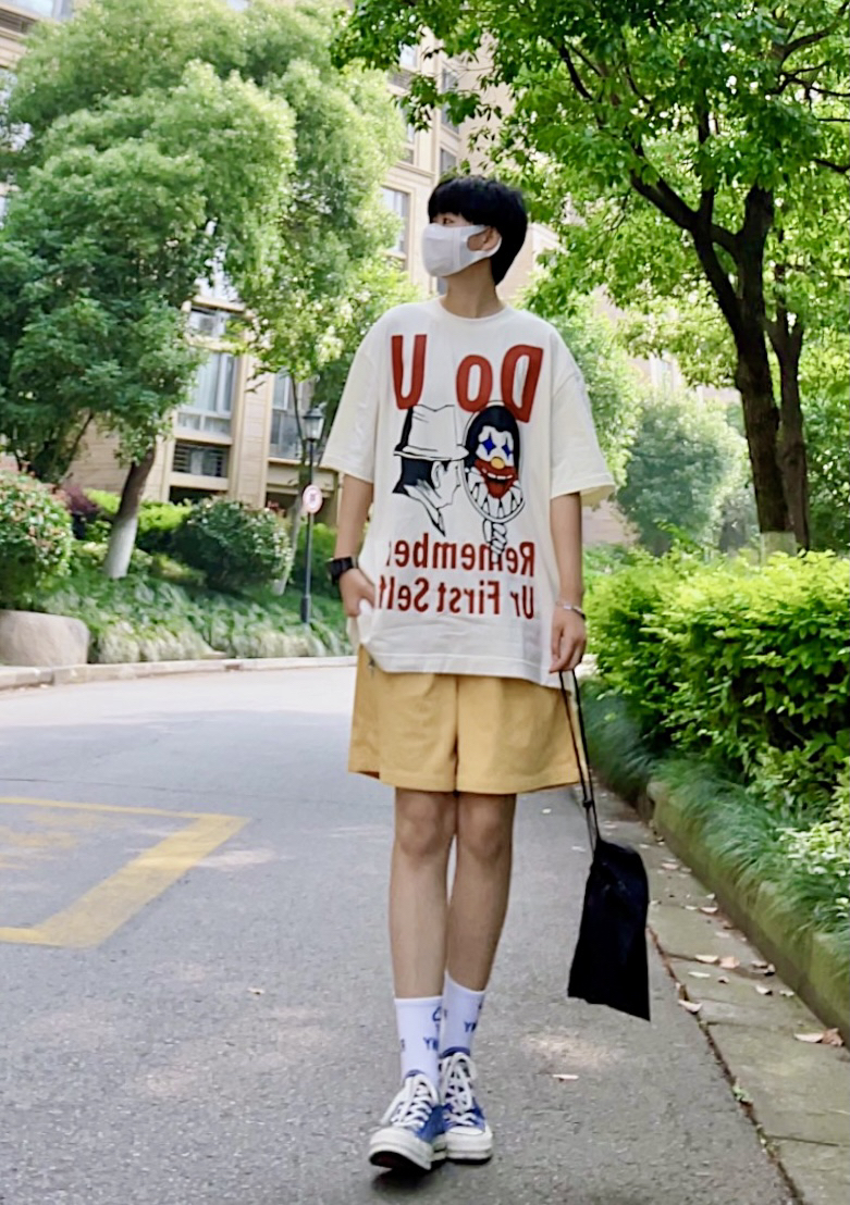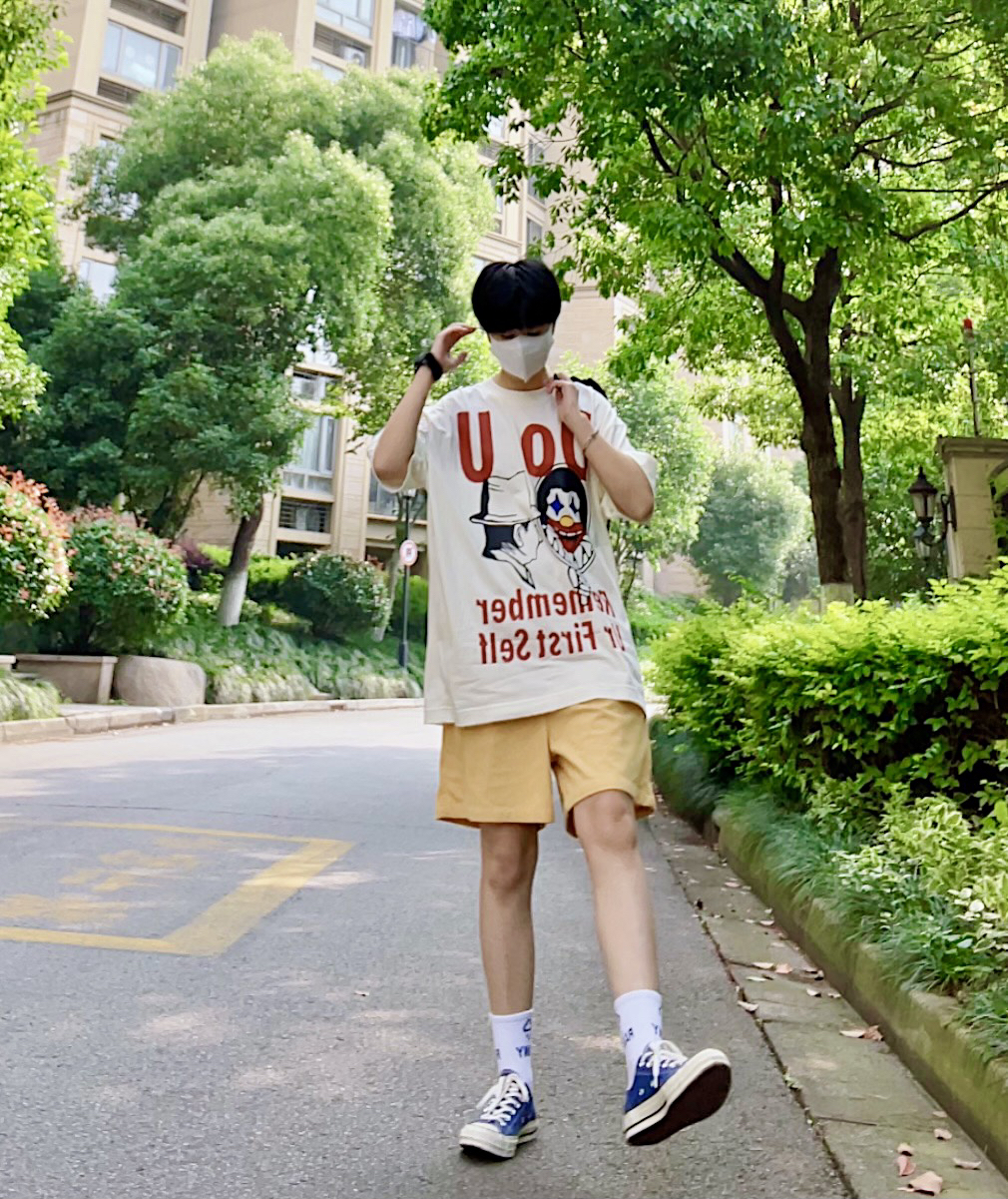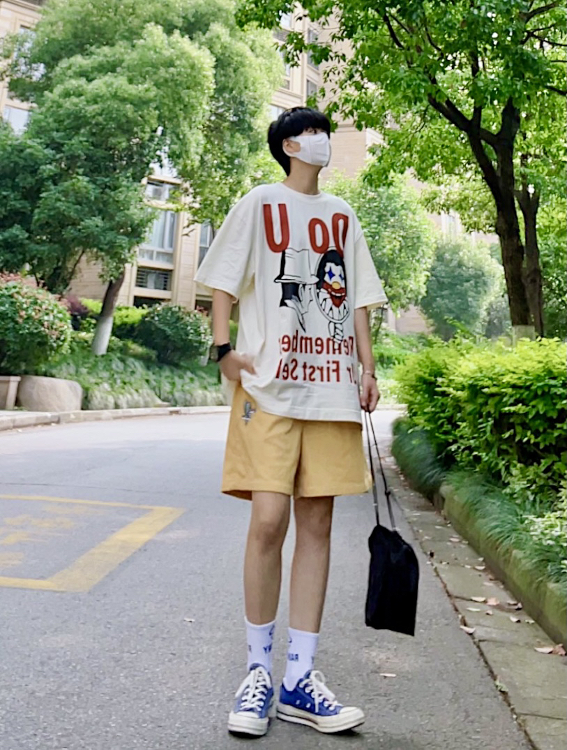 1⃣️今日穿搭 T恤(eafinetal) 短裤(Badcactus) 鞋子(匡威海军蓝70s) —————————————————— 2⃣️黄蓝色的撞色搭配真的超级好看 趣味性设计感的T恤搭配起来真的超棒 宽宽松松的感觉是我最爱了 —————————————————— 3⃣️每日穿搭 OOTD 黄色休闲短裤穿搭 夏日男友风穿搭 印花T恤穿搭 匡威夏日穿搭 黄色系穿搭