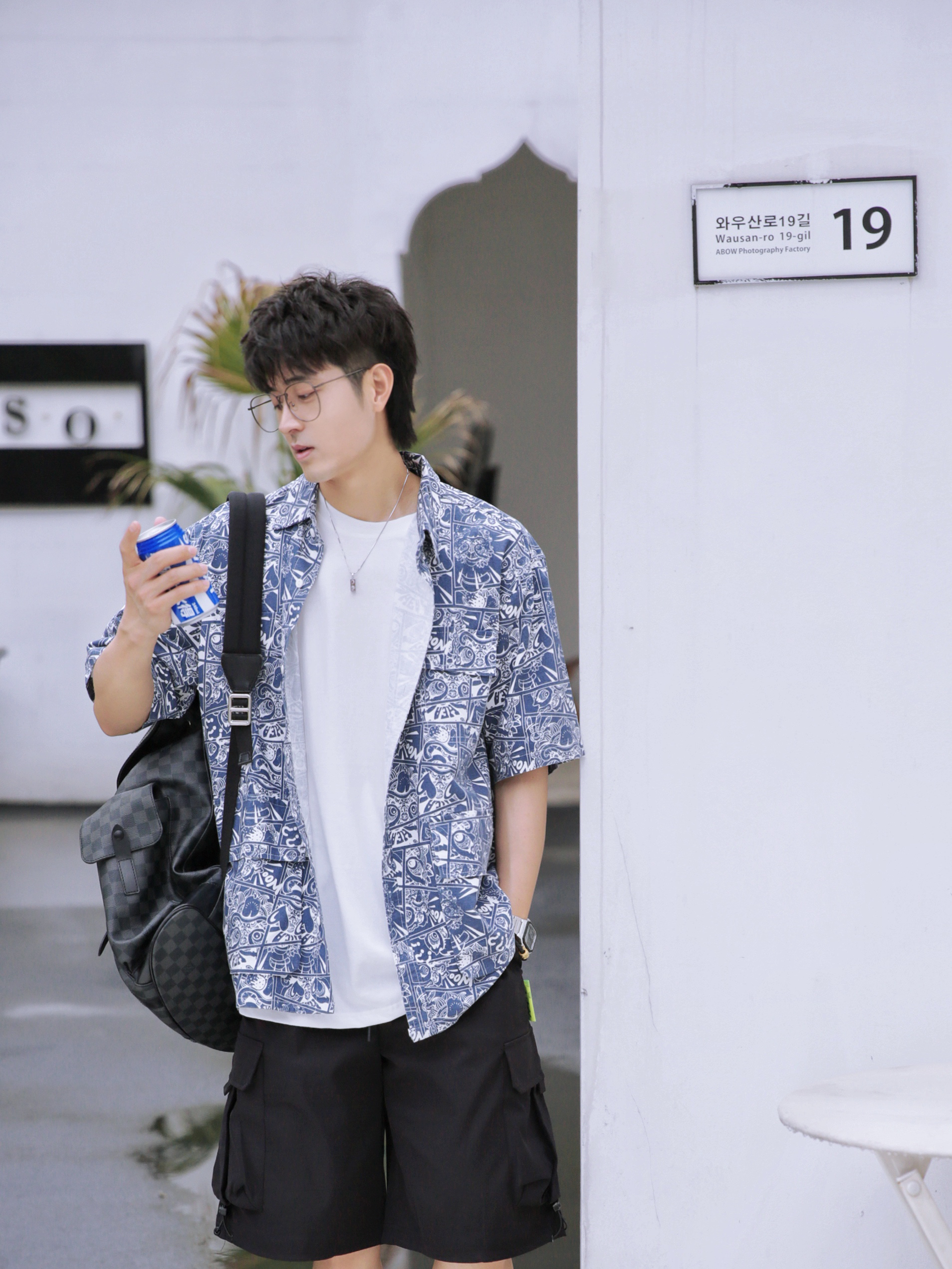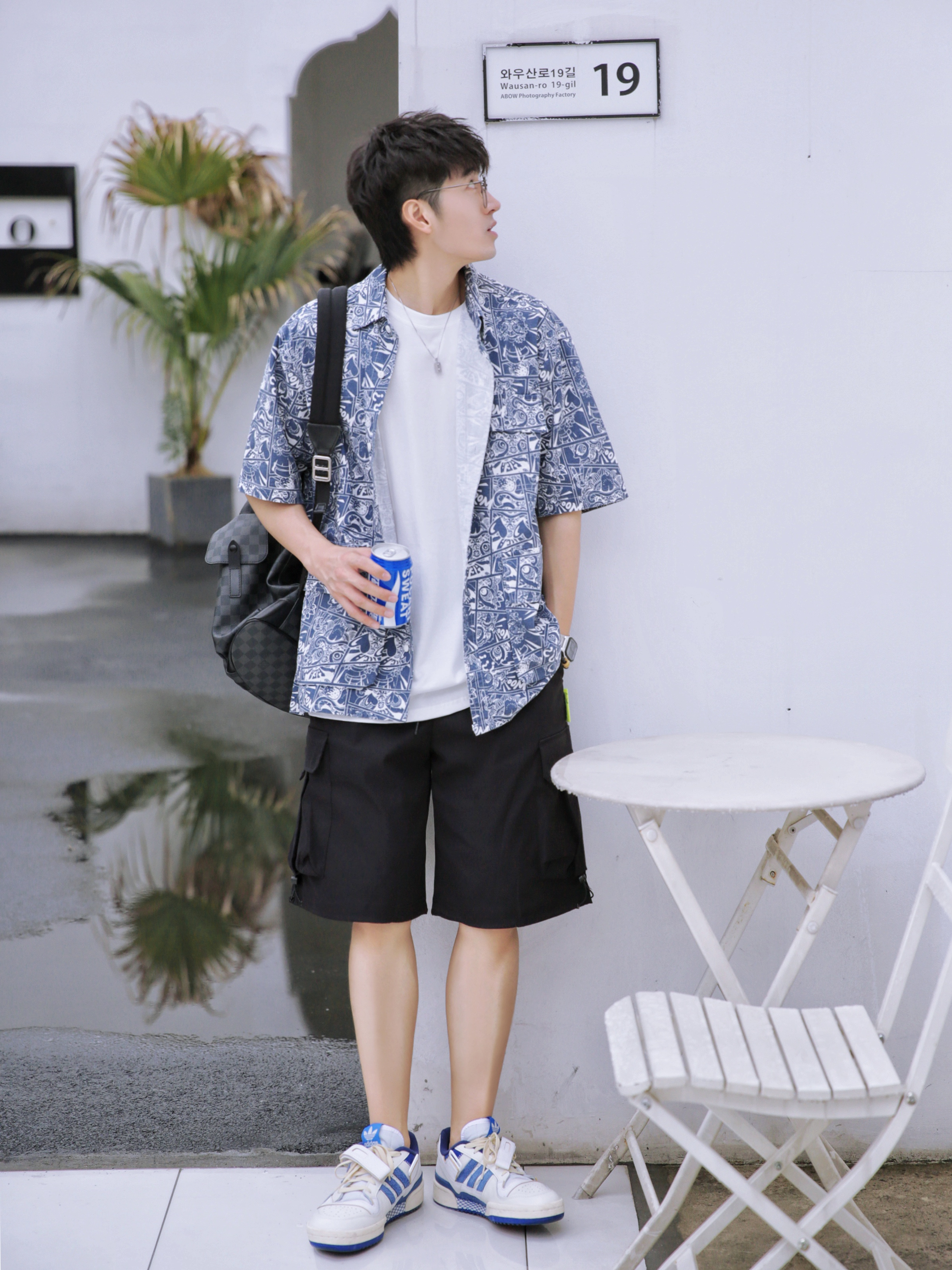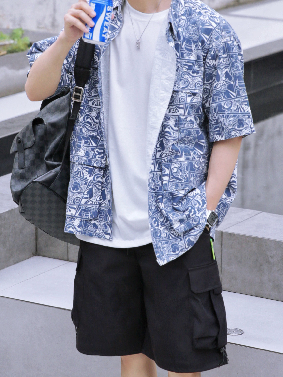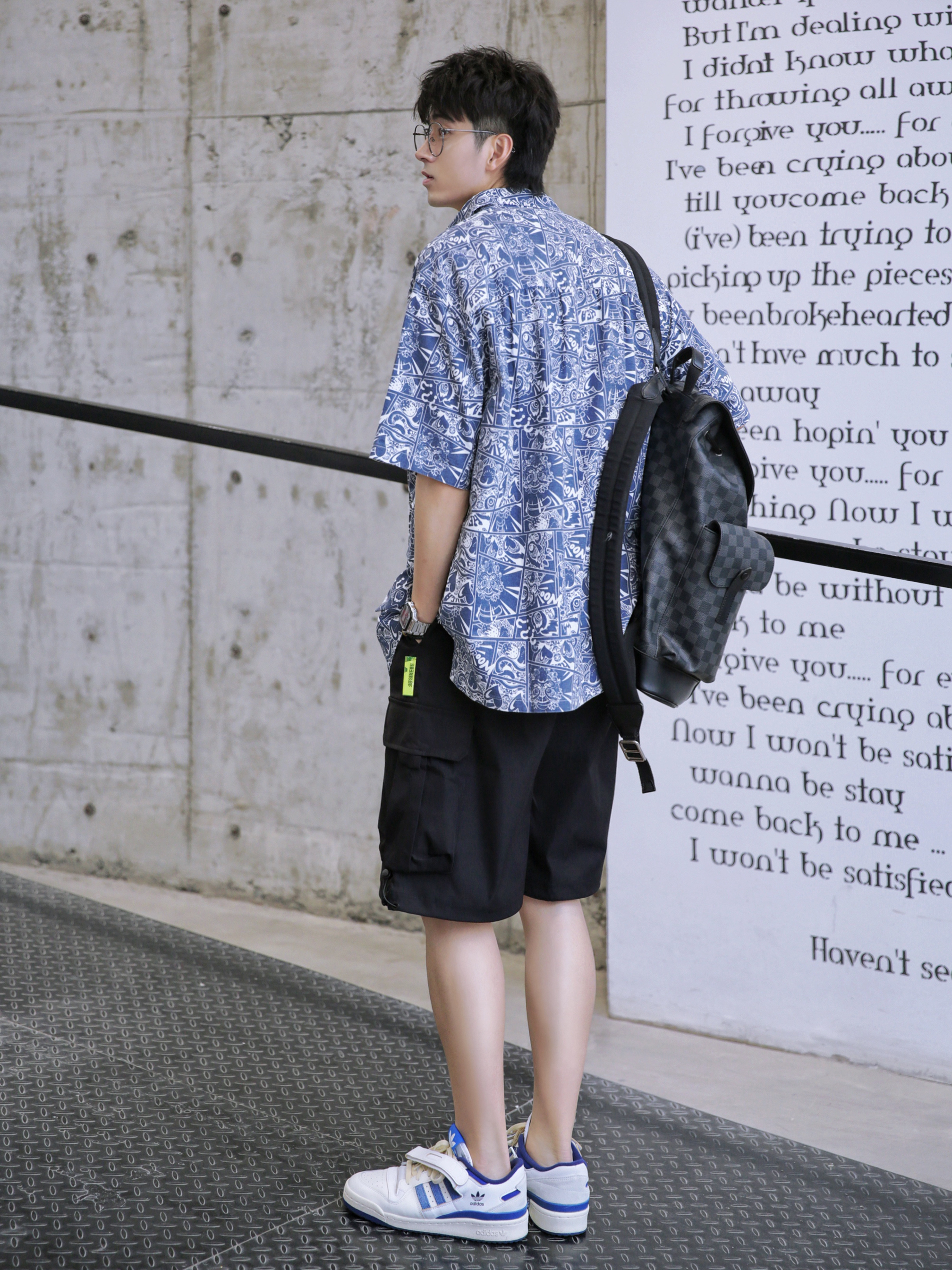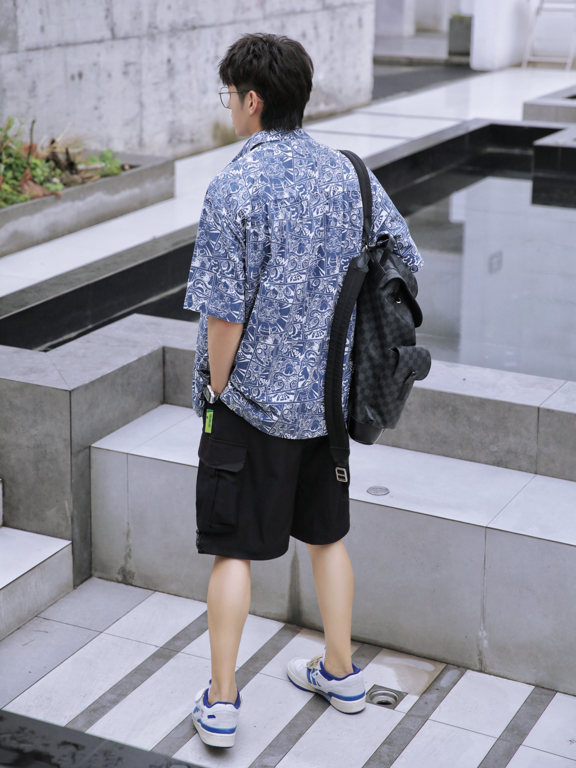 🔹暑期出游,怎么可以没有【花衬衫】呢?有了满满的街头度假风花衬衫,才有出暑假出游的仪式感。 — ⚠️本人身高|体重:176CM|66KG(🉑️参考) — 👔·夏日牛仔蓝花衬衫—PD大人; 👕·打底白T—DONTSTOP; 🎒·棋盘格旅行双肩包—LV; 🩳·黑色工装口袋短裤—PD大人; 👟·蓝白复古篮球鞋—FORUM 84 LOW; —
