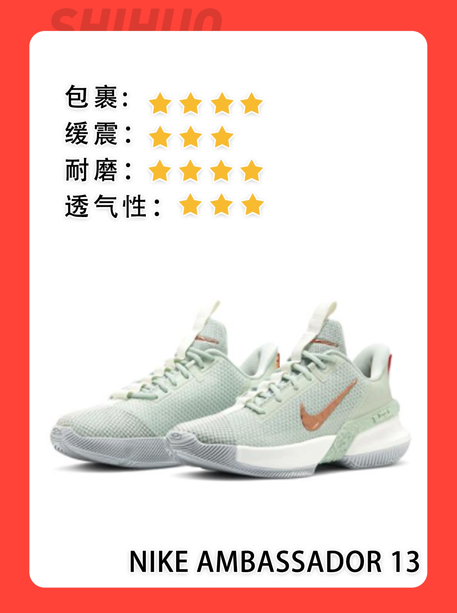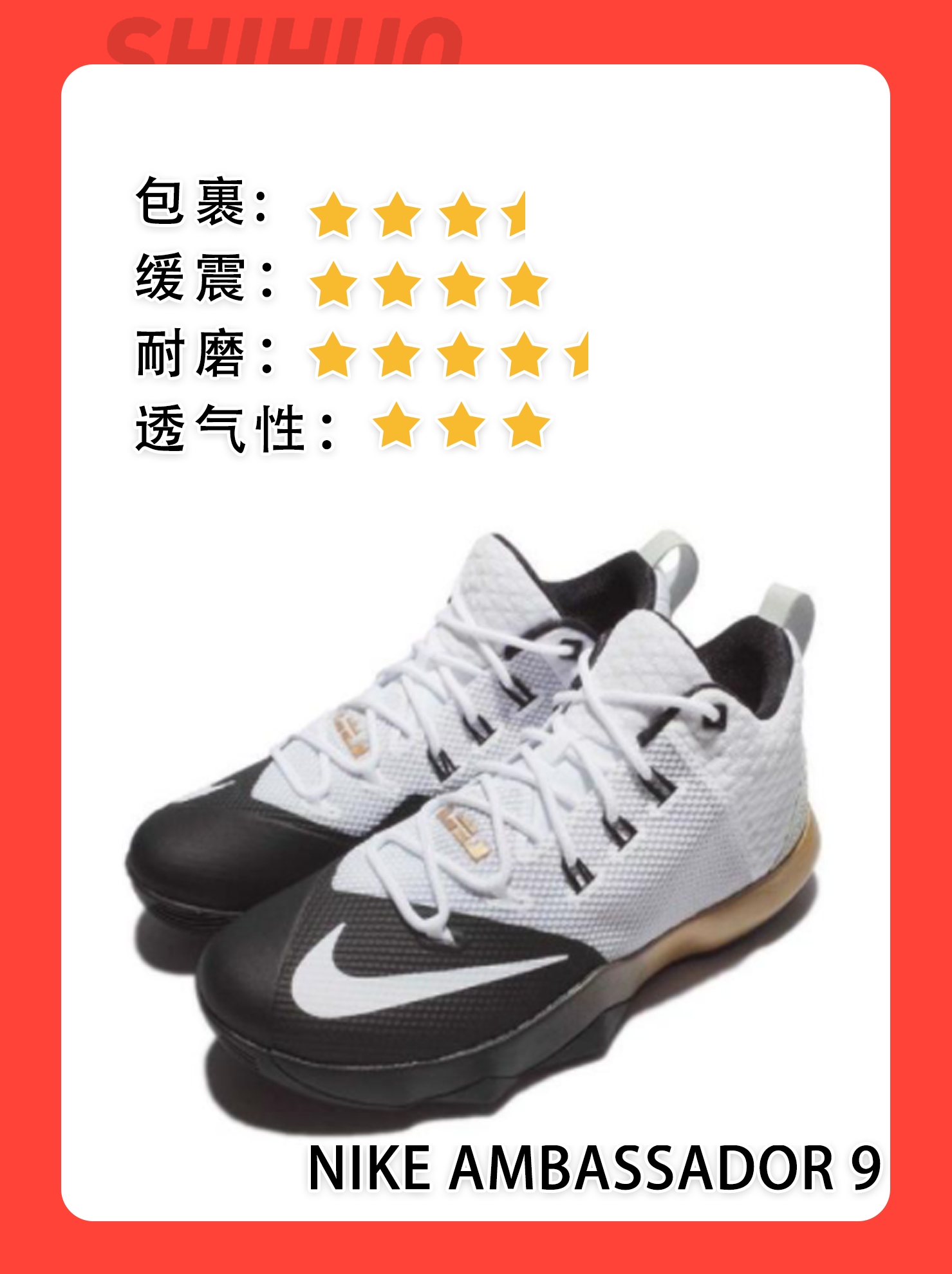 本篇笔记关联了Nike Ambassador 使节 9 舒适透气 防滑耐磨 轻便减震 圆头织物 支撑 实战 合成革 时尚 篮球鞋 白金、Nike Zoom Assersion 实战 防滑耐磨 减震透气 舒适圆头 织物 篮球鞋 黑白、Nike LeBron Soldier 13 士兵13 缓震回弹 耐磨防滑 舒适百搭 包裹性支撑 魔术贴 圆头合成革 织物 实战 篮球鞋 黑/红/绿等商品,为用户提供真实的使用体验和购买参考。
