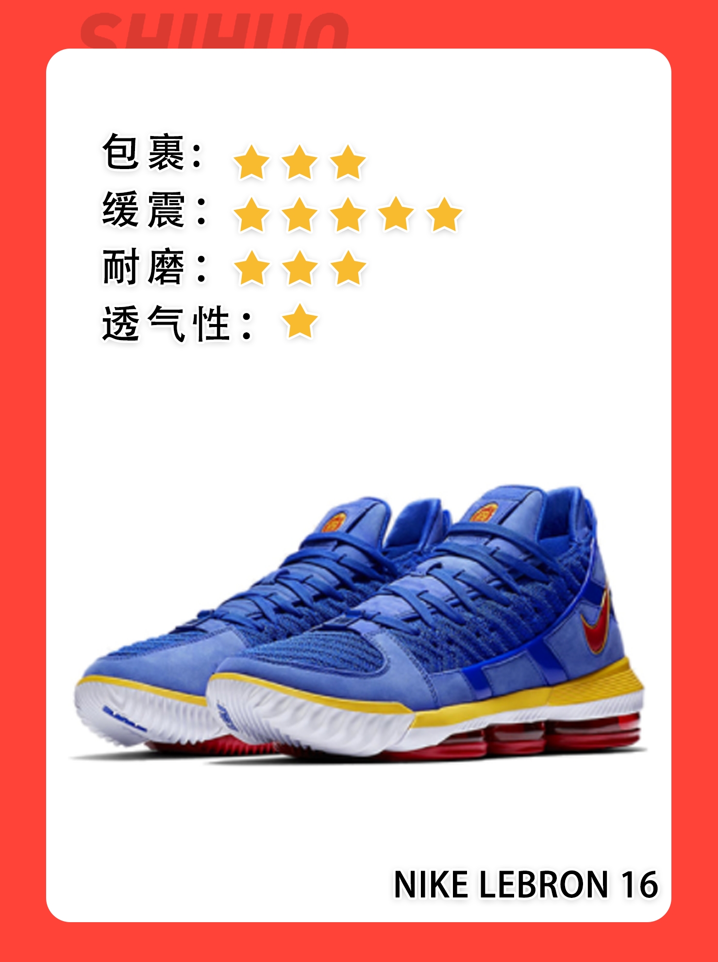 本篇笔记关联了Nike Hyperdunk 2017 篮球鞋 包裹性缓震回弹舒适透气防滑耐磨合成革织物 黑灰编织、Nike Zoom LeBron 15 防滑耐磨 舒适透气 圆头 织物 实战 运动 篮球鞋 白黑、Nike Zoom LeBron 16 詹姆斯 缓震回弹 防滑耐磨 圆头 实战 篮球鞋 蓝超人等商品,为用户提供真实的使用体验和购买参考。