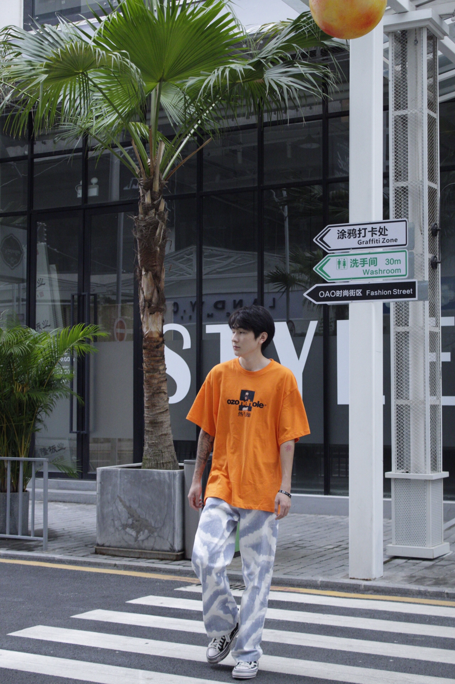 橙色简直太显白了,而且非常的吸睛,胸前的印花也很个性好看! T恤:ozone hole