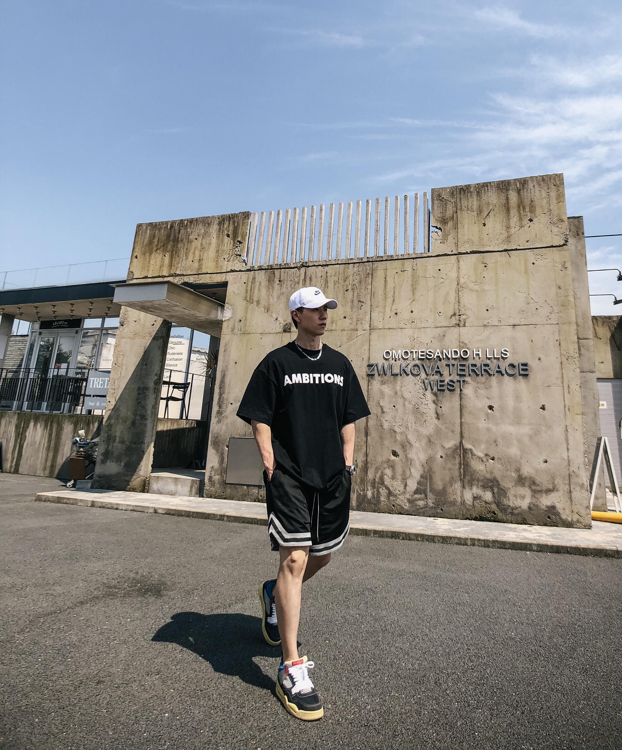 穿搭🉐🆒: T恤版型很重要,所以这个版型很ok,窄肩克星,肩膀刚好,衣长刚好,袖长刚好,胸围也刚好。一切都刚刚好。 短裤双面穿,黑色是网布,柔软亲肤,里面是浅灰色面料,面料也亲肤,好看。 * 🧢帽子:nike * 💫项链:omt旗舰店 * ⌚手表:卡西欧 g shock * 👕上衣:哈林哥studio * 🩳裤子:哈林哥studio * 👟鞋子:aj4