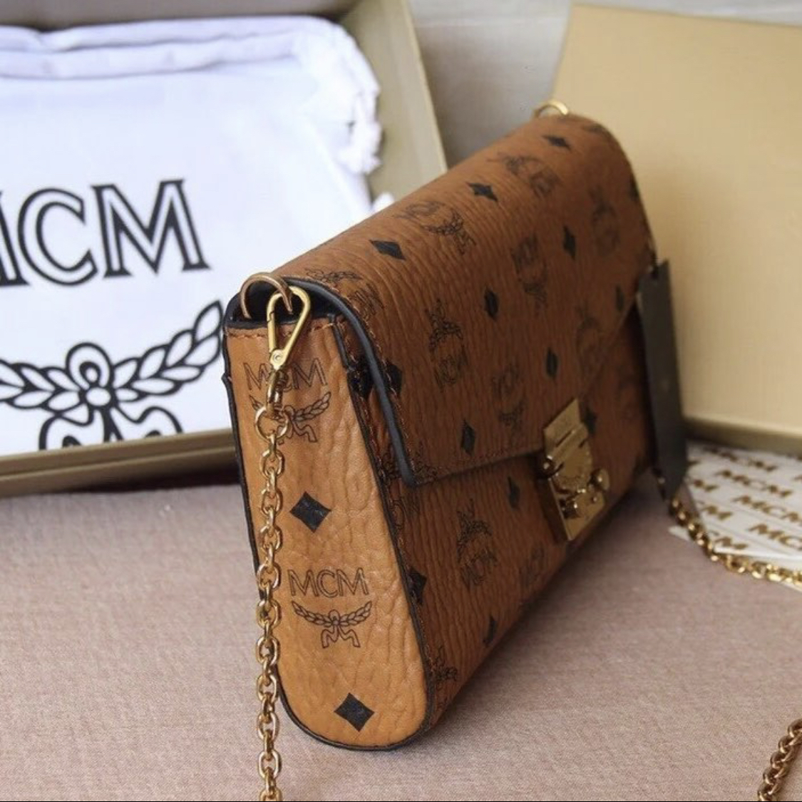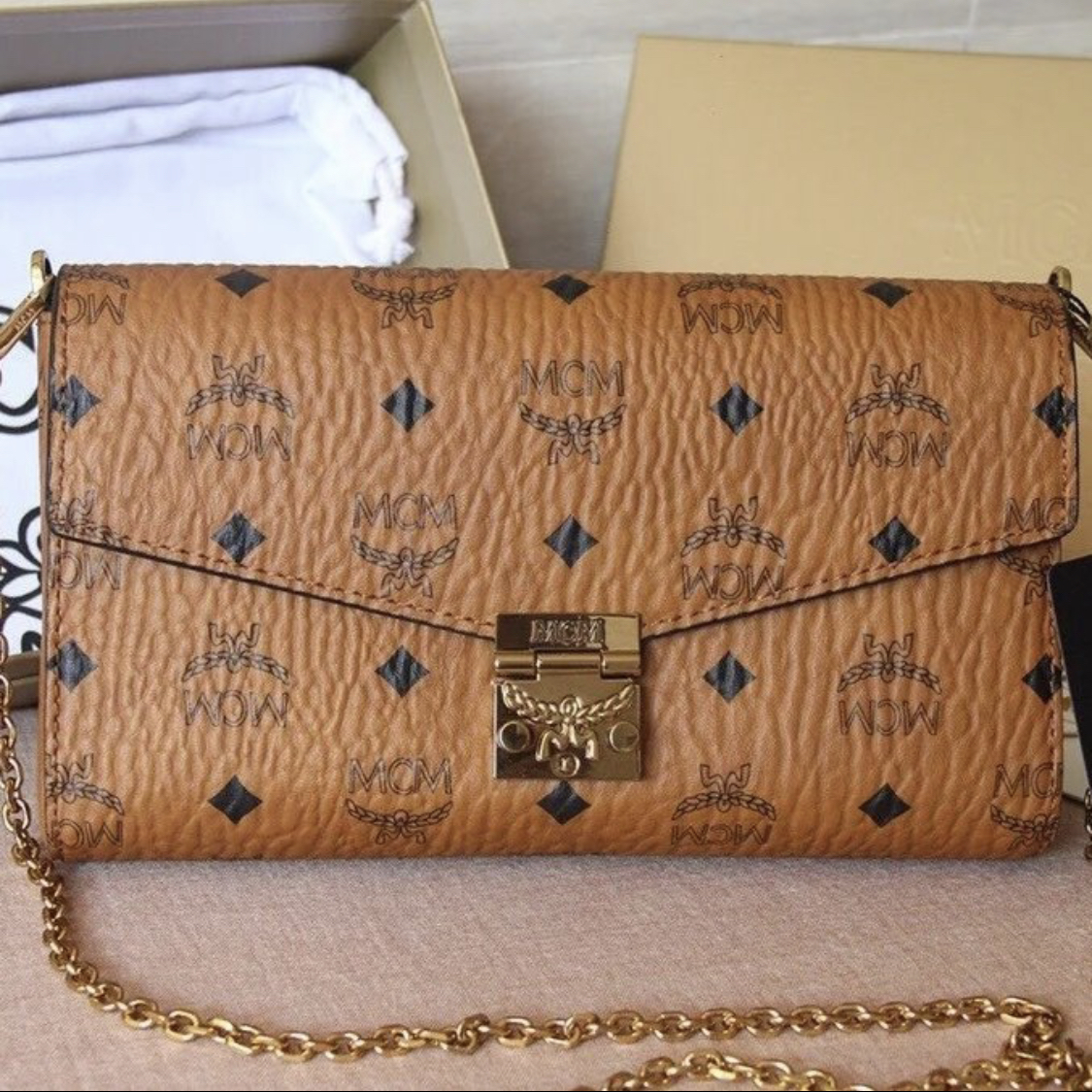本篇笔记关联了MCM Millie Visetos 中号 老花配皮满印翻盖开合皮革织物锁扣开合链条翻盖单肩斜挎包 干邑色等商品,为用户提供真实的使用体验和购买参考。